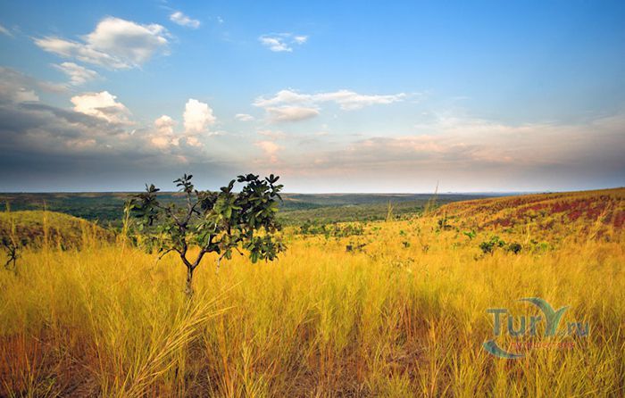 Национальный парк Эмас расположен на территории двух бразильских штатов Гояс и Мату-Гросу-ду-Сул, в Центрально-Западном регионе Бразилии. Национальный парк Эмас, также как Национальный парк Шапада-дус-Веадейрус, относится к зоне лесистых саванн. Преобладающий климат тропический - лето влажное и умеренно жаркое, а зима холодная. Во время изменения климата, cаванна Эмаса помогла выжить многим видам живых организмов. В настоящее время в заповеднике удивительно богатая флора и фауна. По берегам рек Эмаса тянутся сухие леса, а по всей округе парка произрастает высокая трава и торчат красные термитники. На возвышенных участках парка растёт самая высокая в мире пальма Orbignia, круглые кроны которой достигают до 75 метров в высоту. Среди представителей животного мира здесь можно встретить большого муравьеда, гривастого волка и броненосца, крупных лисиц, бразильских дикобразов, ягуаров, кустарниковых собак, оцелотов и тамаринов и многих других. В 2001 году пак был внесён в список Всемирного наследия ЮНЕСКО. Во всемирном фонде дикой природы утверждается, что лесистая саванна – «серраду» является самой биологически разнообразной саванной в мире.