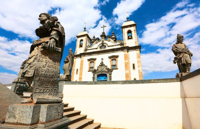 Церковный комплекс Бон-Жесус-ду-Конгоньяс - святилище Минас-Жейраса, расположен в городе Конгоньяс на юге от Белу-Оризонте, Бразилия. Комплекс возник благодаря португальскому иммигранту, который чудесным образом исцелился от тяжелой болезни и решил в благодарность этому событию построить величественный храм. Архитектором комплекса является Франсиско Лима Серкира. Строительство комплекса закончилось в 1772 году. Бон-Жесус-ду-Конгоньяс славится роскошными интерьерами главного храма, наружной лестницей, которая украшена статуями пророков, и семью часовнями, символизирующими остановки на пути к распятию Иисуса Христа. Внешне комплекс построен в стиле барокко, а всё внутреннее убранство святилища представляет собой яркий образец стиля рококо. Центральное здание расположено на вершине Морро-до-Мараньяо, а весь церковный комплекс утопает в зелени бразильских гор и идеально вписывается в ландшафт города Конгоньяс. Вокруг строительства храма собралось несколько знаменитых творческих личностей. В том числе скульптор Алейджанью, который создал двенадцать полихромных скульптур пророков и скульптурные группы остановок к распятию Христа. Эти статуи считаются одними из самых выдающихся скульптур в стиле барокко в мире. Церковный комплекс Бон-Жесус-ду-Конгоньяс – шедевр христианского искусства Латинской Америки. В 1985 году он был включен в список Всемирного наследия ЮНЕСКО.