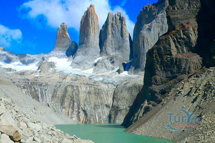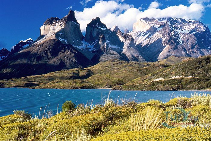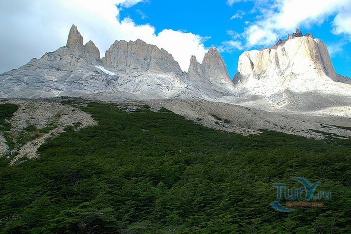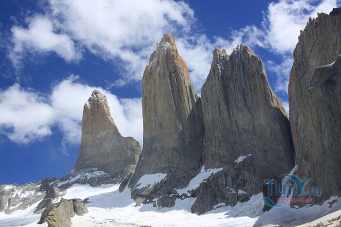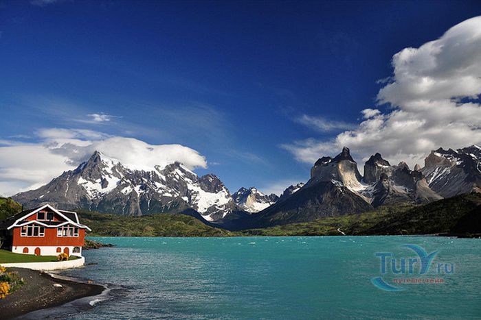 Национальный парк Торрес-дель-Пайне расположен в Чили, административно относится к региону Магальянес и Чилийская Антарктика и территориально входит в земли Южной Патагонии. Площадь парка составляет 2420 километров квадратных. Парк расположен на горных хребтах Торрес-дель-Пайне и Куэрнос-дель-Пайне. Ландшафт парка составляют горы, ледники, реки, озера, тундра и леса. Три гранитных пика Торрес-дель-Пайне, высотой от 2600 до 2850 метров, являются главной визитной карточкой парка и самыми посещаемыми его местами. Высота самого высокого пика Пайне-Гранде составляет 3050 метров. В заповеднике расположены такие ледники как Грей, Диксон, Тиндаль и многие другие. Грей считается крупнейшим ледником в Патагонии. У его подножия находится озеро Грей, образованное вследствие таяния ледника. Озера Диксон, Норденскиолд, Пехоэ, Сармиенто и Торо также подпитываются талой водой ледников. Озера Норденскиолд и Пехоэ соединяет самый большой водопад парка - Сальто Гранде. В парке обитает множество животных и птиц, таких как гуанако, нанду, андский олень, лиса, пума, андский кондор, фламинго и другие. Национальный парк Торрес-дель-Пайне является любимым и самым посещаемым заповедником в Чили – около 2 миллионов туристов в год приезжают сюда и наслаждаются красотами парка. Инфраструктура парка представлена множеством пеших тропинок, кемпингами и отелями для путешественников. В парк можно добраться из города Пуэрто-Наталес, который расположен в 140 километрах от него. В 1978 году парк Торрес-дель-Пайне был объявлен биосферным заповедником ЮНЕСКО.