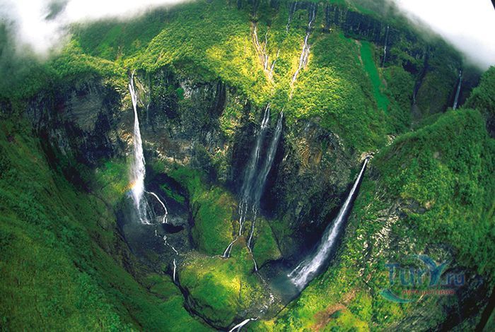 Горы острова Реюньон расположены на одноименном острове и занимают большую его часть. Остров Реюньон – заморский регион Франции, находящийся в водах акватории Индийского океана, в 650 километрах восточнее Мадагаскара. Вулканическая лава на протяжении тысячелетий создавала необычный рельеф острова - горные кручи, долины, вулканические кратеры. В гористой области создан национальный парк Франции, с 2007 года включенный в список Всемирного наследия ЮНЕСКО. Остров имеет вулканическое происхождение и в наше время лавовые поля занимают около двадцати процентов площади острова. На острове расположены вулканы - потухший вулкан Питон-де-Неж и действующий вулкан Питон-де-ла-Фурнез. Питон-де Неж имеет высоту 3069 метров над уровнем моря, является наивысшей точкой острова и формирует горную гряду с одноименным названием. Вулкан Питон-де-ла-Фурнез имеет высоту 2631 метров, считается самым активным вулканом в мире, и его последнее извержение состоялось 2 января 2010 года. Активность этого вулкана в 2007 году, когда магма выбрасывалась на высоту до 200 метров, назвали «извержением века». В горном массиве Питон-де-ла-Фурнез находится множество скал, протекают реки, и насчитывается около 100 водопадов. Своей красотой впечатляют три горные долины, образовавшиеся в результате процесса эрозии вулканической породы - это Силаос, Мафат и Салази. Растительный мир острова Реюньон характеризируется многообразием экосистем и видов растительности и зависит от высот, на которых они произрастают. На низких высотах находятся тропические леса, здесь преобладает жаркий климат, на высоте – низкорослые растения и холодные ветра. Несмотря на вулканическую деятельность на Реюньоне проживает около 840 тысяч жителей, преимущественно задействованных в сельскохозяйственной и туристической деятельности острова. Говорят, что остров Реюньон похож на тропическую Францию. Здесь хорошие дороги, пальмы, аккуратные газоны, множество ресторанчиков. Чтобы посмотреть горные вершины рекомендуется совершать туда экскурсии до 10 часов утра, когда они еще не закрыты облаками. Увидеть всю красоту и мощь горных водопадов можно летом, во время обилия в реках дождевой воды. В красивейшем ущелье Тру-де-Фер, находится 6 водопадов острова, некоторые из них наполнены водой даже в сухой период. Водопад Вуаль-де-Марье, находящийся в долине Салази считается самым высоким водопадом острова. Высота водопада, включая все каскады, составляет около 300 метров. Чтобы посмотреть всю красоту горных ландшафтов острова Реюньон, обязательно стоит заказать экскурсию на вертолёте.