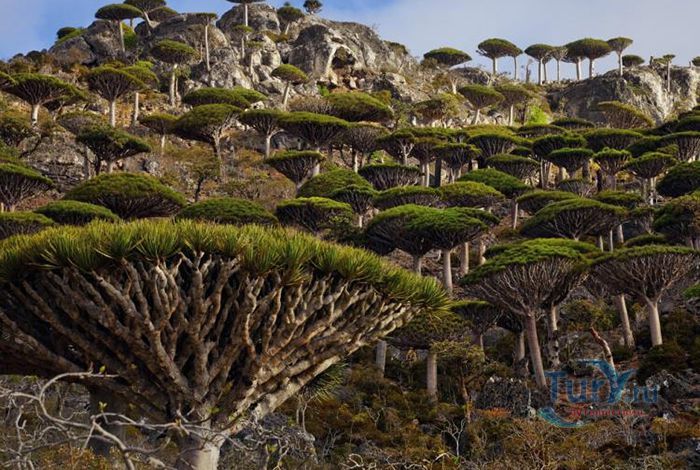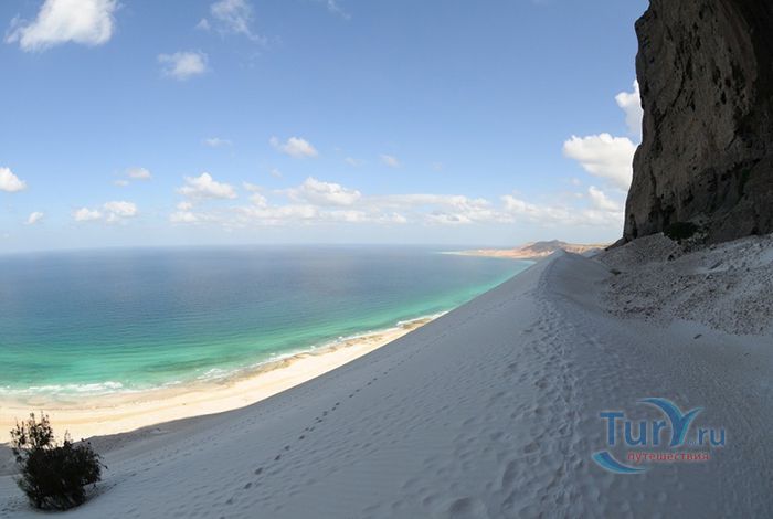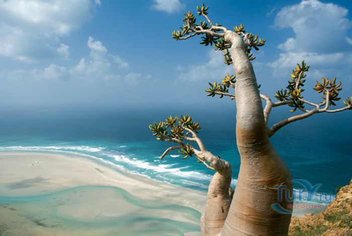 Архипелаг Сокотра – группа из четырех островов и двух скал расположенных в акватории Индийского океана и принадлежащих Республике Йемен. Острова Сокотра, Абд-эль-Кури и Самха – они обитаемые, остров Дарса – необитаемый. Названия двух скал - Сабуния и Каль-Фираун. Общая площадь архипелага составляет 3,6 тысячи квадратных километров. Самым большим и главным островом архипелага, общей площадью 3625 квадратных километров, является остров Сокотра. Поверхность Сокотры состоит из прибрежных равнин, известнякового плато и горы Джебель-Хагар. Остров находится под влиянием пустынно-тропического климата. Архипелаг Сокотра находится на расстоянии 350 километров, к югу от Аравийского полуострова. Данная группа островов имеет континентальное происхождение, около 6 миллионов лет назад острова отделились от материка Африка. Такая отдаленность сформировала на архипелаге уникальный растительный и животный мир, характеризующийся высокой степенью эндемизма. По этой причине Сокотра была внесена в список Всемирного наследия ЮНЕСКО. На островах архипелага насчитывается более 825 видов растений, третья часть которых считается эндемичными. Самым известным эндемичным растением и символом Сокотры является Драцена киноварно-красная или Сокотрово драконово дерево. Дерево встречается по всей территории острова на высоте от 500 до 1500 метров. Своё название драцена получила за красный смолистый сок на коре. Высота дерева до 10 метров, с кроной похожей на вывернутый наизнанку зонтик. Животным мир представлен сокотрийской газелью Тахрир, мускусным котом Цивета, летучими мышами и другими. Достаточно уютно себя чувствует пернатый мир архипелага, в их числе и сокотранский длиннохвостый скворец, сокотранская нектарница, сокотранский воробей и золотокрылый вьюрок. В основном проживание людей сконцентрировано на главном острове Сокотра. Считается, что острова архипелага слабо развиты для туристической индустрии. Отдых возможен в кемпингах и нескольких скромных отелях. Архипелаг ежегодно посещает около 2000 туристов, которые отдают предпочтение спокойному отдыху на лоне девственной природы с белоснежными дюнами, горами, изумительными пляжами в окружении очень дружелюбного местного населения.