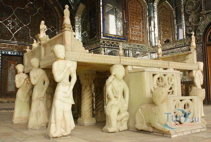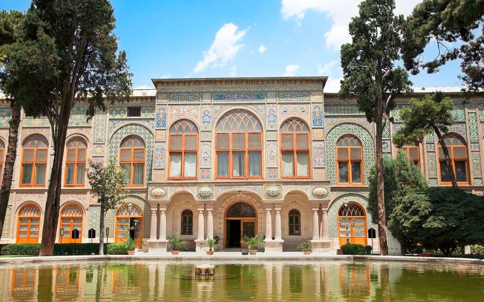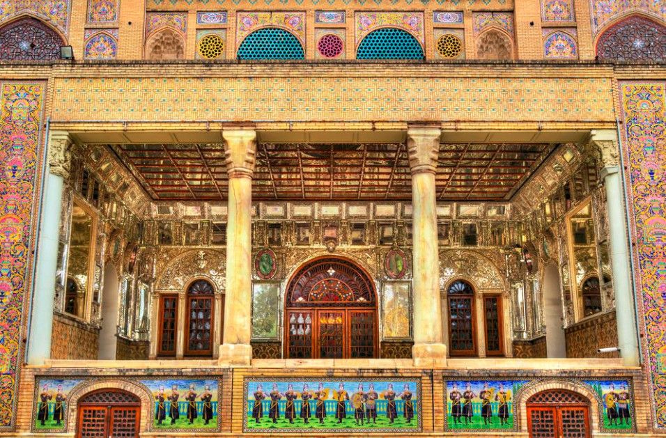Дворец Голестан – музейный комплекс, в который входят около 20 зданий, расположен в Тегеране, Иран. Дворец был построен в 16 столетии и постоянно перестраивался до 19 века. Название музея дословно переводится «дворец роз». Дворец считается архитектурным и ремесленным шедевром периода правления Каджаров в Иране, в нем удачно сочетаются персидские и западные архитектурные стили. В 18 столетии в Тегеран перенесли столицу Ирана и дворец стал резиденцией шаха. Голестан был построен из долговечных строительных материалов и очень хорошо сохранился. В те времена строительство роскошных зданий считалось признаком царского могущества, поэтому Тегеран был застроен многочисленными дворцами и считался «жемчужиной иранских городов». Дворец Голестан расположен на площади Арг и со всех сторон окружен другими историческими зданиями. Комплекс Голестан условно разделен на 7 частей и включает множество зданий, в числе которых можно назвать Шамс-аль-Эмара, Зал Салям, Зеркальный зал, Мраморный тронный зал, Алмазный зал, Хоуз-хана, Каримхановская комната, Ветровое здание, Коронный зал, Бриллиантовый зал и здание казначейства. В дворцовых зданиях представлены экспозиции из различных эпох, в том числе ткани и гобелены, оружие, книги, керамика, музыкальные инструменты, бытовая и праздничная одежда и другое. Главным помещением дворца является Мраморный тронный зал, в котором проводились официальные приемы. Сейчас там сохранился трон из йездского желтого мрамора, считающийся вершиной иранской архитектуры. Фасады зданий в составе комплекса Голестан состоят преимущественно из декоративных колонн и зеркальной отделки, которые ранее не имели аналогов в иранской архитектуре. На территории дворца расположен также бассейн и многолетний сад. В 2013 году дворец Голестан был включен в Список Всемирного наследия ЮНЕСКО.