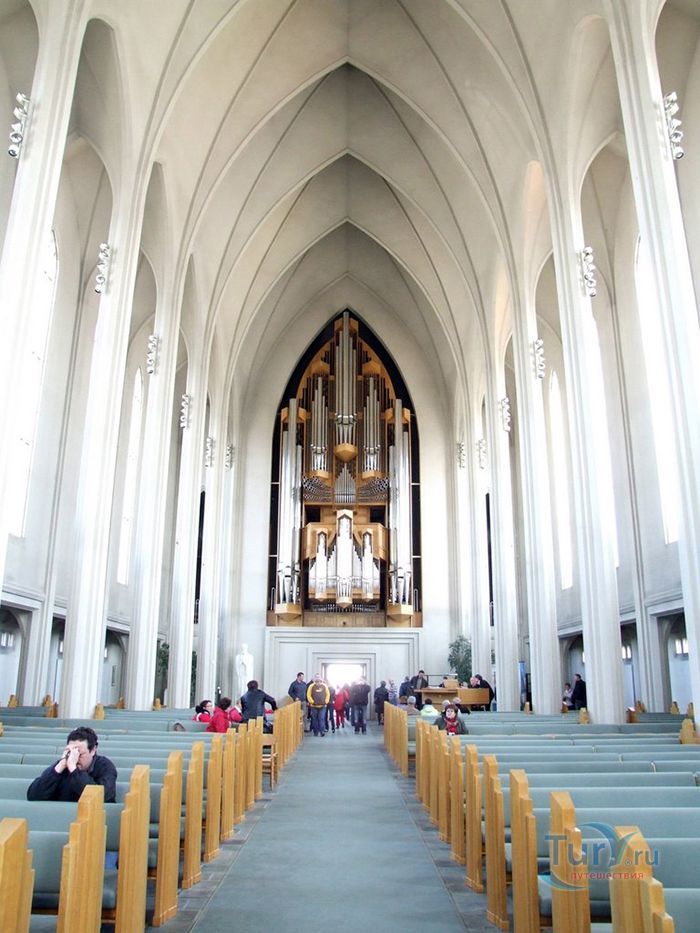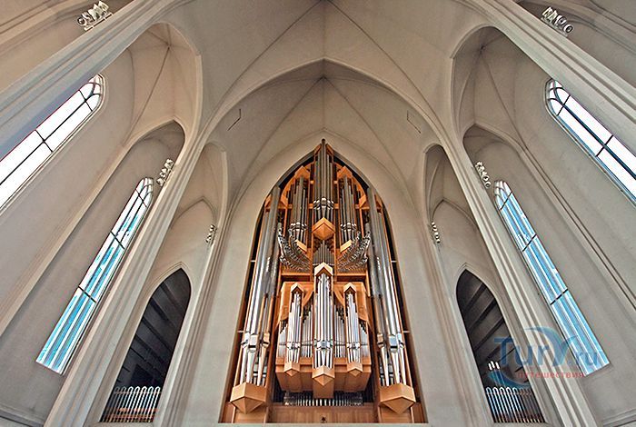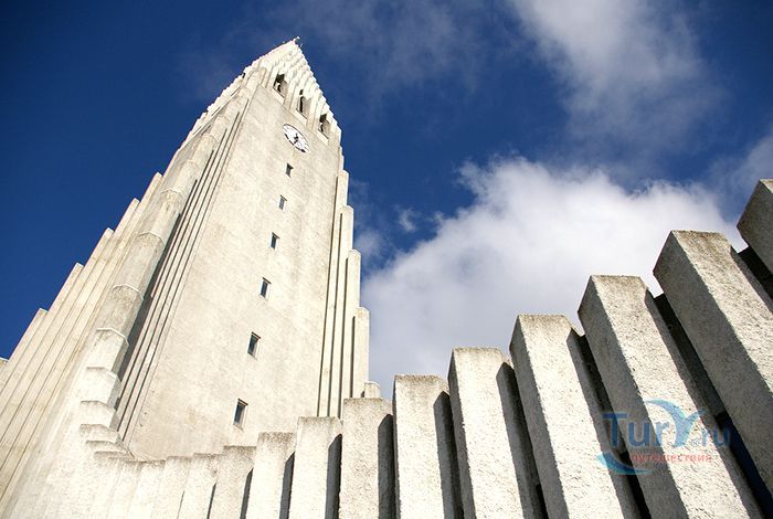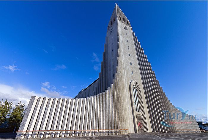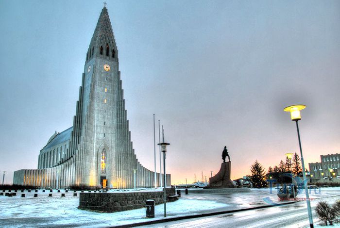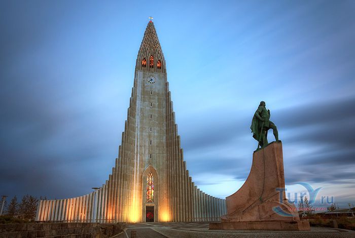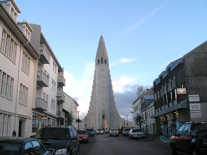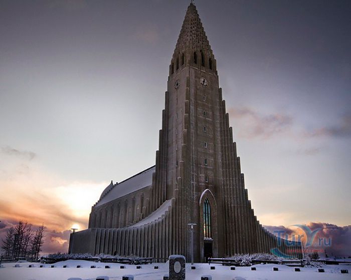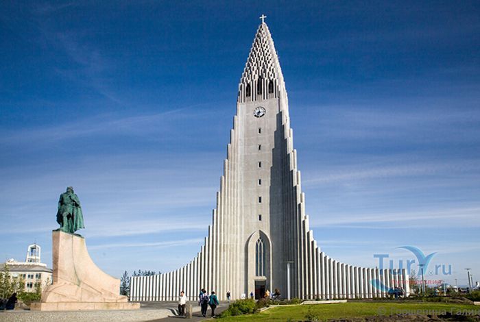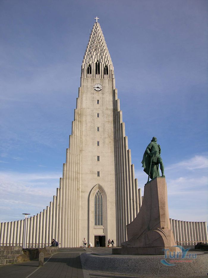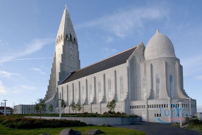 Хатльгримскиркья – лютеранская церковь в Рейкьявике, самая высокая церковь в Исландии. Хатльгримскиркья строилась 38 лет в период с 1945 по 1986 год. Сам проект был разработан за 8 лет до начала строительства известным исландским архитектором Гудйоуном Самуэльссоном. Архитектор попытался придать церкви форму, похожую на вулкан, который в символическом восприятии находится в активном состоянии и извергает лаву в небеса. Собор строился постепенно и без спешки - первыми были возведены хоры и крипта, а позже башня с крыльями. Церковь Хатльгримскиркья считается одной из достопримечательностей города, она расположен в его центре и названа в честь исландского поэта и лютеранского проповедника Хадльгримура Петурссона. Величественное здание оборудовано 15 метровым механическим органом с 5275 трубами, общим весом 25 тонн. Внутреннее убранство достаточно скромное и не выделяется, какими либо декорациями, но как замечают посетители, сама высота купола дает ощущение воздушности и свободы. Собор может вместить 1200 человек и кроме богослужений используется для проведения поэтических вечеров, концертов и театрализованных представлений. Вечера органной музыки проходят здесь каждую неделю. В соборе хранится первая исландская Библия, изданная в 1584 году. На площади перед входом в собор находится статуя исландского мореплавателя Лейфа Эрриксона, который был первооткрывателем Америки еще за пять столетий до Колумба. Статуя Лейфа Эрриксона была подарена Соединенными Штатами Америки в честь тысячелетия исландского парламента. На крыше 73 метрового собора есть обзорный площадка, с которой открывается прекрасная панорама на дома и кварталы Рейкьявика, окруженного океаном с одной стороны и горами с другой.