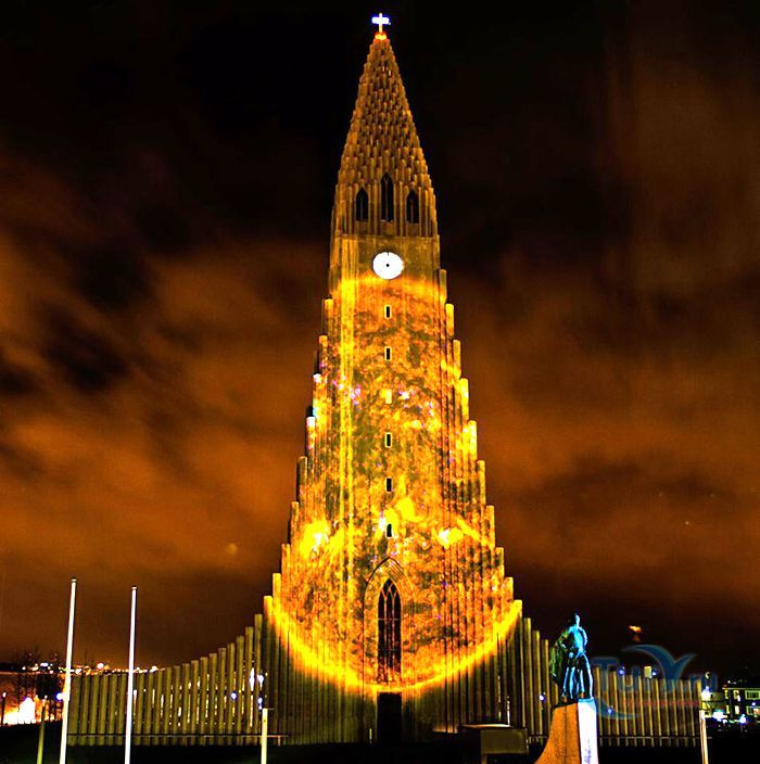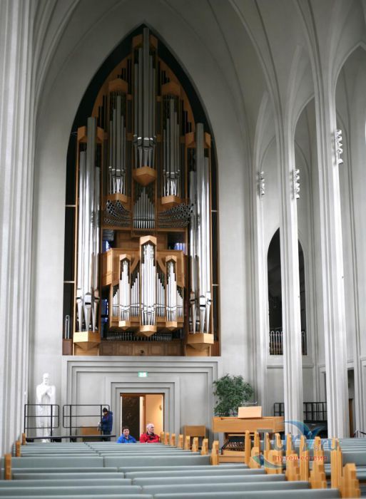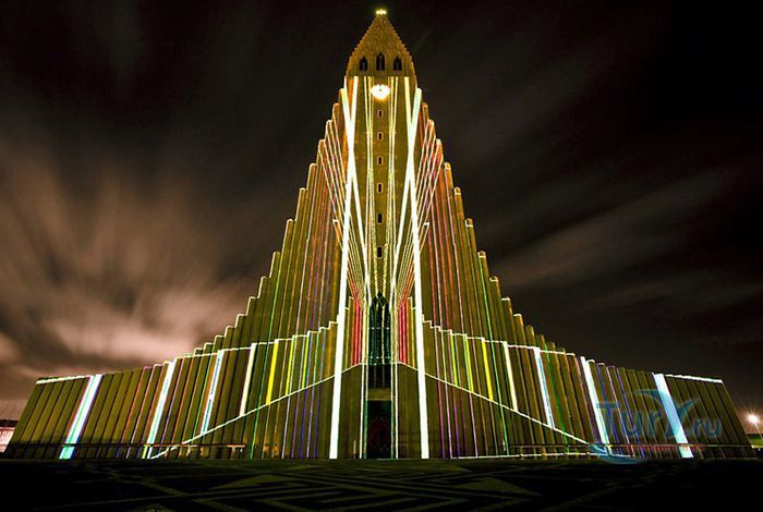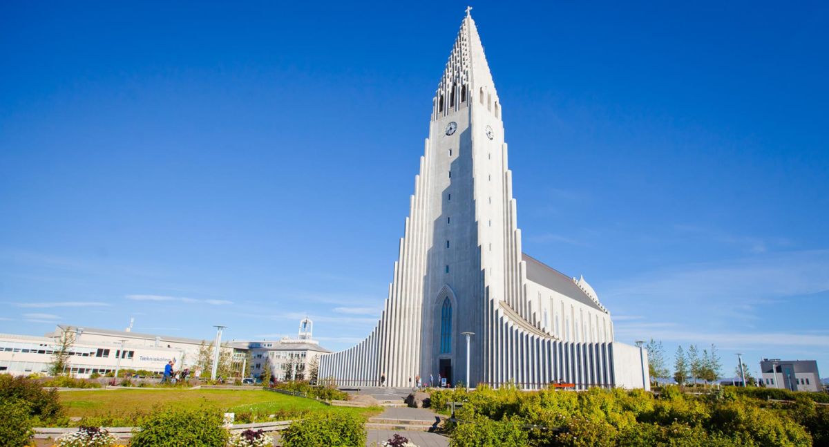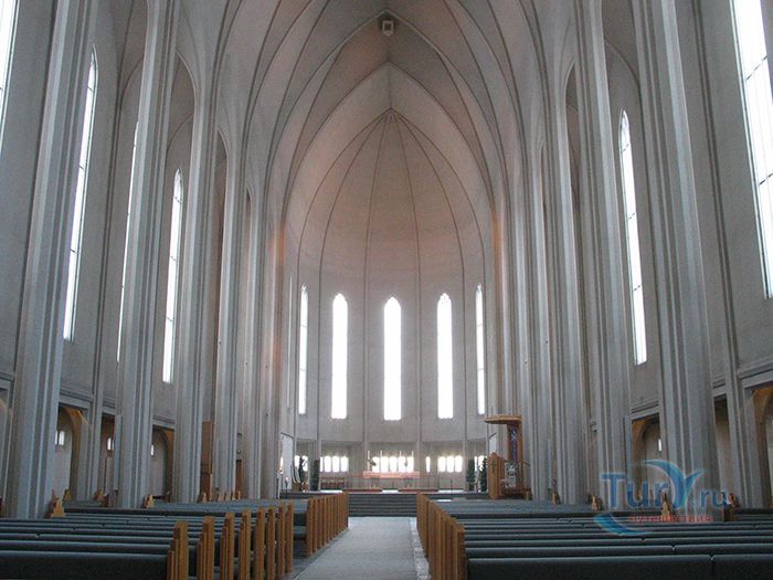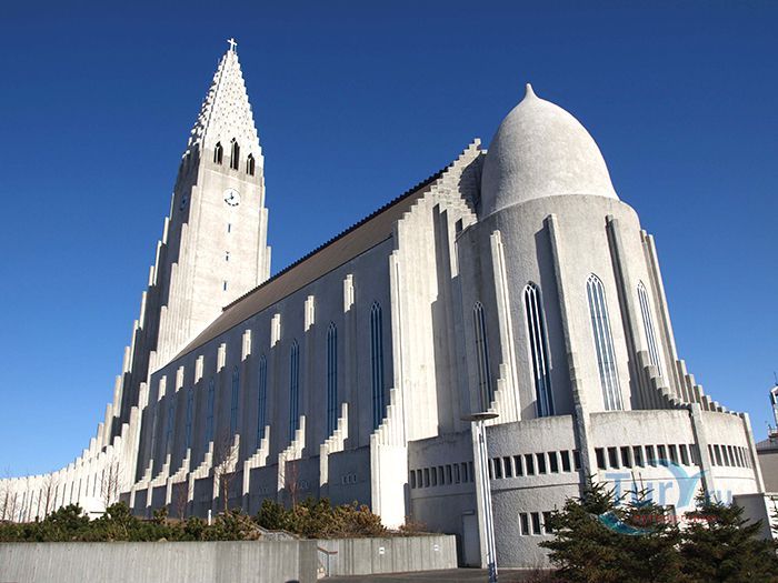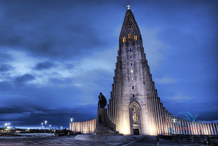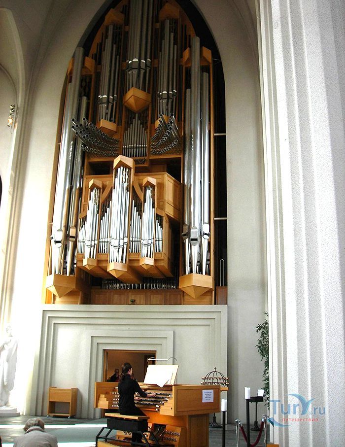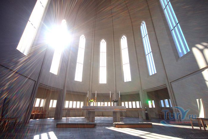Хатльгримскиркья – лютеранская церковь в Рейкьявике, самая высокая церковь в Исландии. Хатльгримскиркья строилась 38 лет в период с 1945 по 1986 год. Сам проект был разработан за 8 лет до начала строительства известным исландским архитектором Гудйоуном Самуэльссоном. Архитектор попытался придать церкви форму, похожую на вулкан, который в символическом восприятии находится в активном состоянии и извергает лаву в небеса. Собор строился постепенно и без спешки - первыми были возведены хоры и крипта, а позже башня с крыльями. Церковь Хатльгримскиркья считается одной из достопримечательностей города, она расположен в его центре и названа в честь исландского поэта и лютеранского проповедника Хадльгримура Петурссона. Величественное здание оборудовано 15 метровым механическим органом с 5275 трубами, общим весом 25 тонн. Внутреннее убранство достаточно скромное и не выделяется, какими либо декорациями, но как замечают посетители, сама высота купола дает ощущение воздушности и свободы. Собор может вместить 1200 человек и кроме богослужений используется для проведения поэтических вечеров, концертов и театрализованных представлений. Вечера органной музыки проходят здесь каждую неделю. В соборе хранится первая исландская Библия, изданная в 1584 году. На площади перед входом в собор находится статуя исландского мореплавателя Лейфа Эрриксона, который был первооткрывателем Америки еще за пять столетий до Колумба. Статуя Лейфа Эрриксона была подарена Соединенными Штатами Америки в честь тысячелетия исландского парламента. На крыше 73 метрового собора есть обзорный площадка, с которой открывается прекрасная панорама на дома и кварталы Рейкьявика, окруженного океаном с одной стороны и горами с другой.