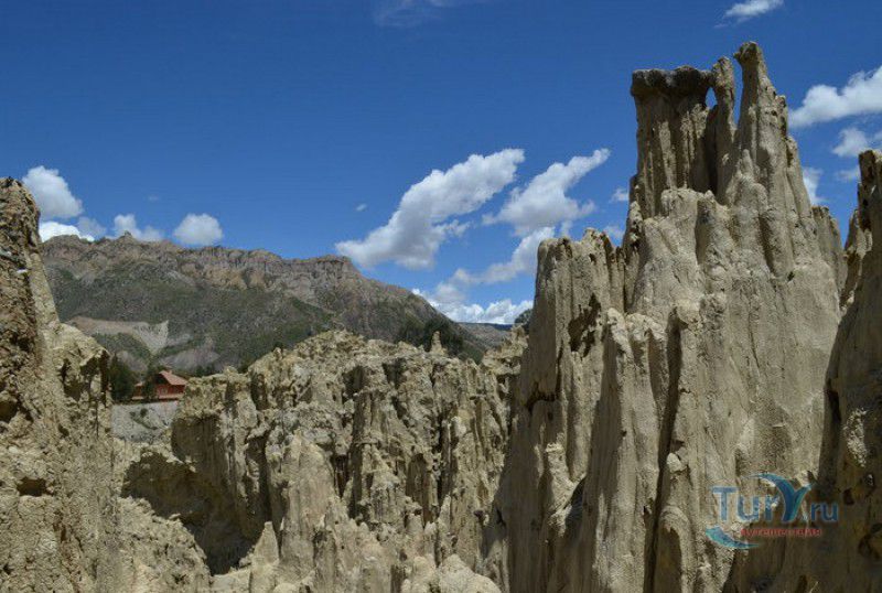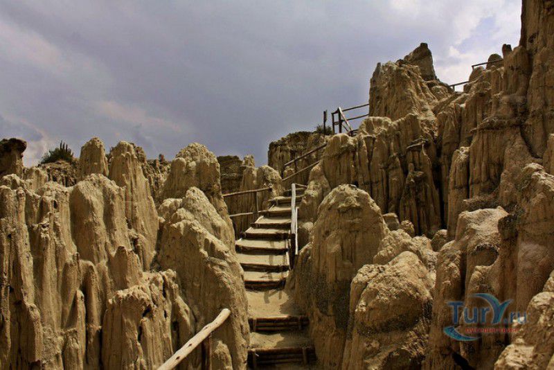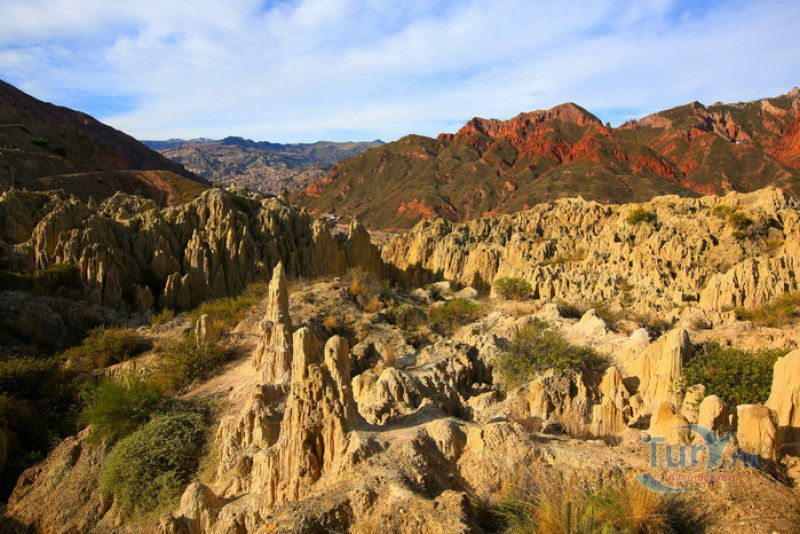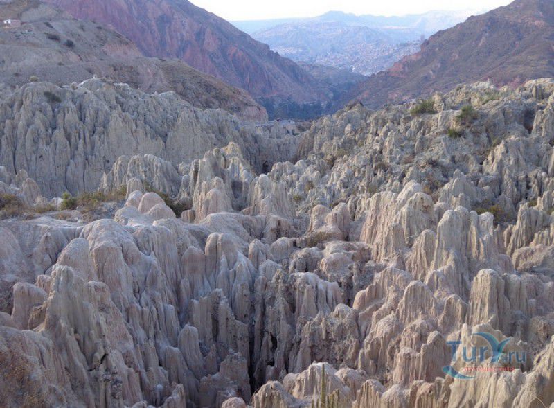 Лунная Долина расположена в Боливии, в 11 км от центра города Ла-Пас. Геологическое "чудо природы", представляющее собой лабиринт каньонов и гигантских острых шпилей, образовалось в результате эрозии - на протяжении веков вода и ветер вытачивали в глинистой горной породе сюрреалистические пейзажи. Своё название Лунная долина получила с лёгкой руки американского астронавта Нила Армстронга - первого человека, ступившего на Луну. Местные жители утверждают, что, увидев скальные конусы, кратеры и впадины, легендарный астронавт сравнил причудливый рельеф местности с поверхностью Луны. Благодаря различному минеральному составу горной породы, скалистые структуры отличаются разнообразием оттенков - от бежевого до красноватого и тёмно-фиолетового. В долине растут несколько видов кактусов, в том числе San Pedro, содержащий сильный галлюциноген мескалин. Из животных здесь обитают несколько видов ящериц и странный зверёк - горная вискаша, грызун семейства шиншилловых, внешне напоминающий кролика, но с беличьим хвостом. Для посетителей оборудованы пешеходные маршруты по Лунной долине, в некоторых местах тропа довольно узкая и обрывистая, есть подвесные мостики и крутые лестницы. С обзорной площадки Точка Дьявола открывается панорамный вид на город и живописные окрестности. На входе в Лунную долину есть небольшой туристический информационный центр, желающие остаться на ночь могут остановиться в расположенном неподалёку кемпинге.