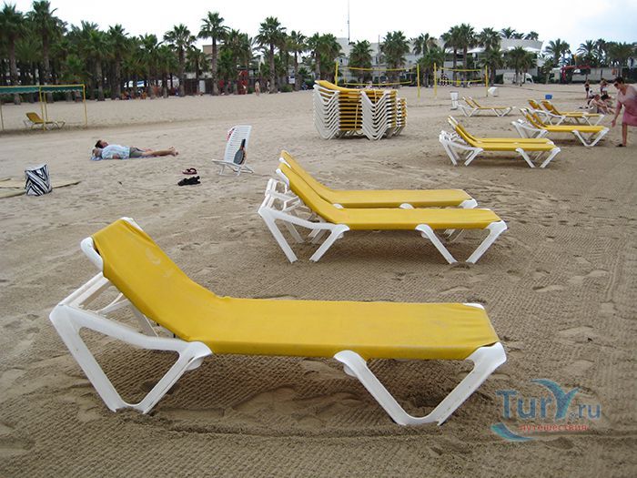 На пляже есть: места для спуска инвалидов, мототрасса, душевые, туалеты, пляжный бар, лежаки, зонтики, навесы, водные мотоциклы, парусные суда, парковка, спасатели, детская игровая площадка и спортивная площадка. Рядом располагается автобусная остановка.
