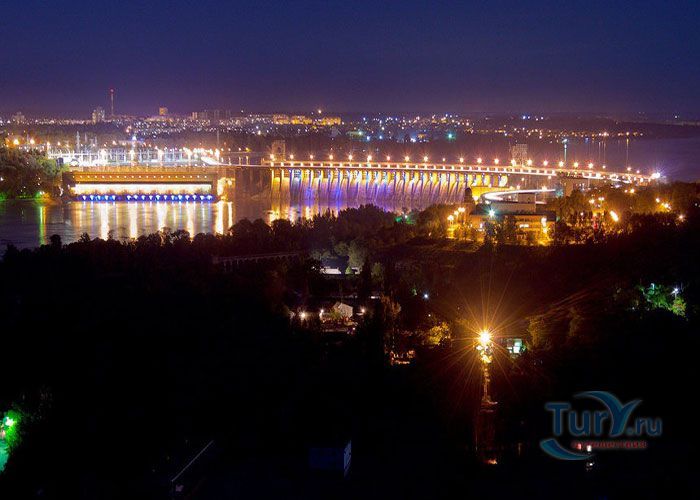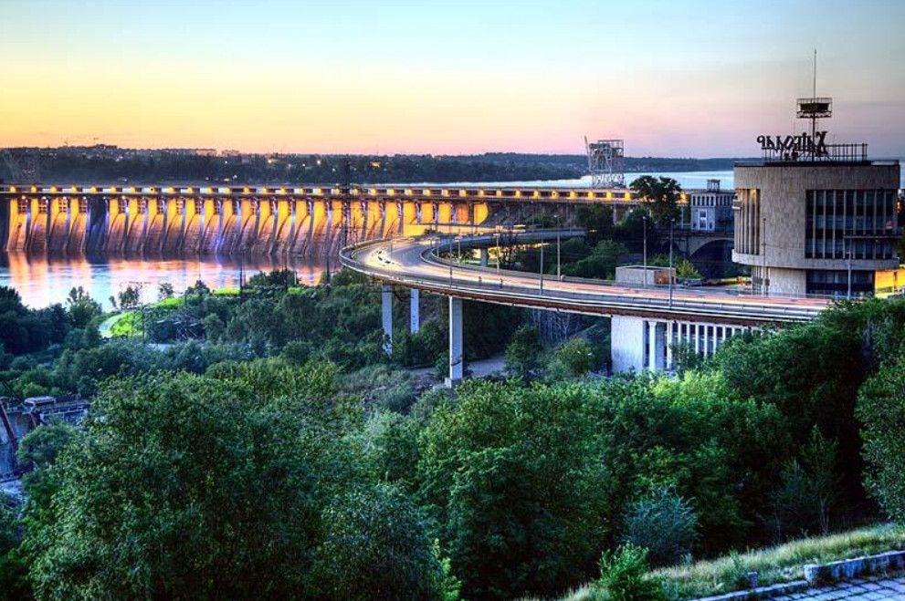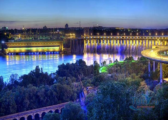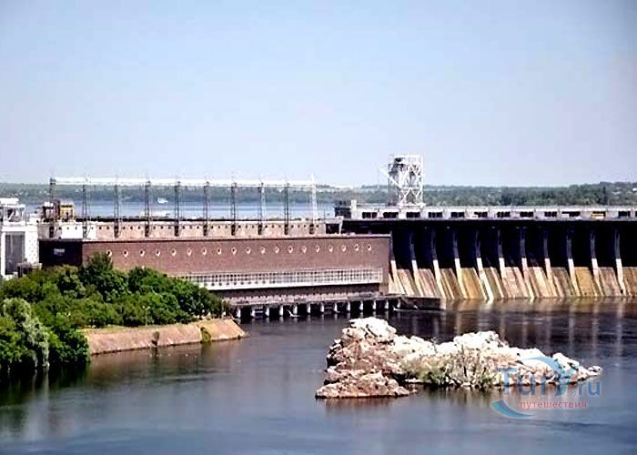 Днепровская гидроэлектростанция обеспечивает электроэнергией Донецко-Криворожский промышленный район. Станция находится в городе Запорожье и является старейшей среди каскада электростанций на реке Днепр. Строительство ДнепроГЭС началось в 1927 году, первый агрегат был запущен в 1932 году. С пуском ДнепроГЭСа были затоплены днепровские пороги и открылось сквозное судоходство по Днепру. На энергетической базе ДнепроГЭСа развернулось строительство крупного промышленного комплекса чёрной и цветной металлургии. Во время Великой Отечественной войны плотина ДнепроГЭСа была разрушена, а оборудование машинного зала уничтожено. Вновь запустили электростанцию лишь в 1950 году. Днепровская гидроэлектростанция состоит из плотины и двух машинных залов. Плотина служит для создания перепада уровня воды, а в машинных залах установлены турбины, вырабатывающие электроэнергию. За первым машинным залом находится аванкамера для обеспечения постоянного давления воды. Сверху плотины находятся два подвижных крана, которые поднимают заслонки для сброса воды мимо турбин. Это делается, например, при паводках, когда уровень воды превышает нормальный. Рядом со зданием дирекции ГЭС находится массивное здание музея ДнепроГЭСа. Сейчас доступны два зала с экспозициями о строительстве, восстановлении и сооружение второй очереди ГЭС. В ходе экскурсии можно осмотреть макет станции, действующие турбины в машинном зале.