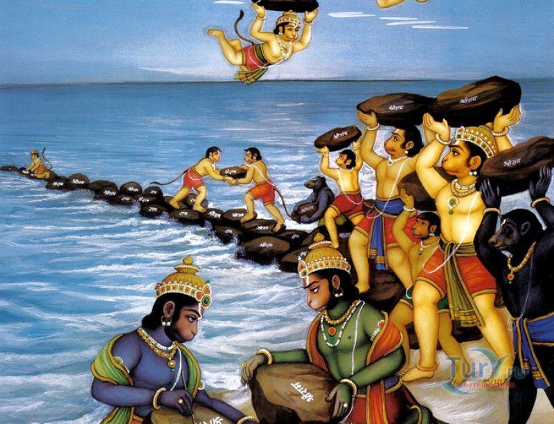 Мост Рамы (так называют его индуисты) или Адамов Мост (у мусульман) представляет собой цепочку отмелей и коралловых островков протяженностью 48 км, связывающую южный берег Индии с островом Шри-Ланка. Мусульмане называют отмель Адамовым мостом, так как считают, что Адам после изгнания из рая очутился на острове Цейлон, а на материк перешёл именно по этому "мосту". Индуисты же утверждают, что мост Рамы был построен в незапамятные времена по приказу императора Рамы. Строили его ванары под предводительством короля обезьян Ханумана. По этому мосту войска Рамы переправились на Шри-Ланку для сражения с её правителем, демоном Раваной, похитившим возлюбленную Рамы - Ситу. Споры о происхождении моста продолжаются до сих пор, последователи индуизма считают его рукотворным, "божественным" и священным. В средние века на арабских морских картах мост Рамы был отмечен как полноценный, возвышающийся над водой мост, по которому можно было перейти из Индии на остров Цейлон. В конце XV столетия, в результате сильного землетрясения и вызванного им шторма, мост был частично разрушен и "ушёл под воду". Однако, португальцы и англичане по-прежнему обозначали его на картах как искусственное сооружение, дамбу или мост. Спорят по поводу происхождения моста и учёные. Достоверно известно, что суша здесь возникла не из-за движений земной коры, и данный "мост" не является следствием геологических процессов. Исследования структуры "моста" показали, что нижний слой толщиной от 3 до 5 метров состоит из песка, верхний - из валунов правильной формы, размером 1,5 на 2,5 метра, состоящих из известняка, песка и кораллов. Прямолинейный и упорядоченный характер укладки также свидетельствует в пользу версии, что эти валуны были кем-то принесены и уложены в дамбу. Снимки отмели, сделанные космическим агентством НАСА, только подлили масла в огонь. На снимках многие "углядели" построенный богами или людьми, но самый настоящий мост. Его и сейчас можно перейти, идя либо по пояс в воде, либо переплывая наиболее глубокие участки. Ширина моста Рамы колеблется от 1,5 до 4 километров, глубина морского дна вокруг - 10-12 метров, сам мост погружен в воду в среднем на 1,25 метра. В 2005 году правительством Индии был утверждён проект по строительству канала сквозь Адамов мост (Sethusamudram Shipping Canal Project), что позволило бы сделать Полкский пролив судоходным. Против выступило местное население, считающее мост Рамы священным, многие общественные организации и учёные-экологи. Тем не менее, корпорация Sethusamudram начала строительные работы на месте будущего канала. Но многие земснаряды были возвращены в порт из-за "непонятных" поломок, постоянно ломались зубья ковшей, а нехарактерный для этого времени года шторм разметал суда и не дал продолжить работы. Верующие индуисты сразу заявили, что это царь обезьян Хануман охраняет построенный им мост. В 2010 году Верховным судом Индии проект строительства канала был отложен на неопределённый срок. Мост Рамы или Адамов Мост продолжает вызывать споры среди учёных о природе своего происхождения и возрасте, о нём снимают фильмы, репортажи, пишут научно-популярные статьи. Мост Рамы является одной из самых популярных достопримечательностей Шри-Ланки, увидеть это "чудо природы" приезжают тысячи туристов со всего мира.