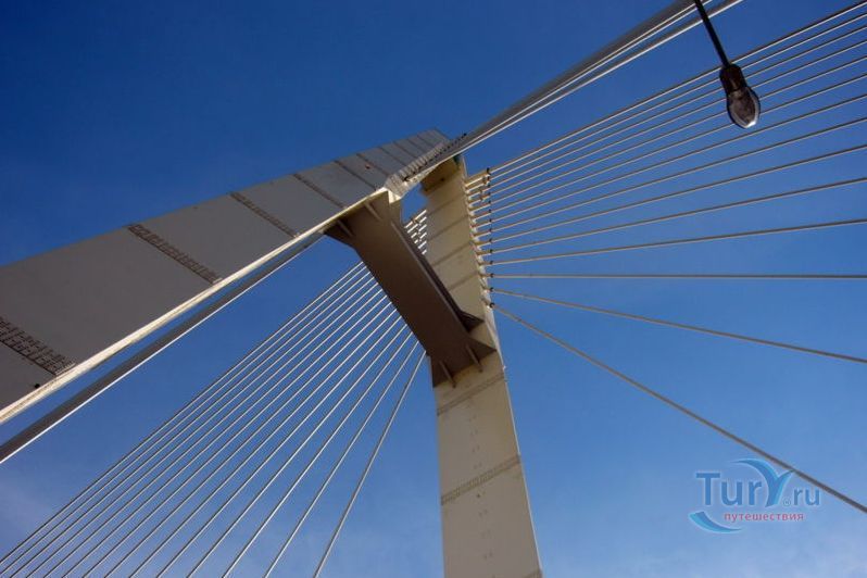 Большой Обуховский мост часто называют просто Вантовым, тем более что в Петербурге есть еще один Обуховский мост. Ванты – это стальные тросы, на которых подвешен мост. Они крепятся к огромным столбам по обеим берегам реки – пилонам. Высота их составляет около 123 м, что выше шпиля Петропавловского собора в Петербурге. Именно эти металлические колонны служат несущей опорой моста.