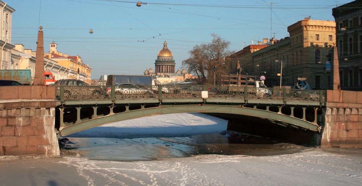 Поцелуев мост является одним из самых старых мостов Петербурга. Поначалу он состоял лишь из нескольких досок, переброшенных горожанами через реку Мойка в первой половине 18 века. Некоторое время спустя мост обзавелся перилами, а затем был расширен, превратившись из пешеходного моста в транспортный. В начале 19 века деревянный Поцелуев мост заменили чугунным, сделанным по проекту архитектора В. И. Гесте. Новый мост состоял из нескольких секций и был украшен гранитными обелисками с фонарями. Его узорчатая ограда в точности повторяла ограду на набережных Мойки в этом месте. С тех пор Поцелуев мост ремонтировался не один раз. Первая крупная реконструкция произошла после сильного наводнения в 19 веке, которое едва не разрушило мост полностью. Последующие реставрационные работы были связаны с развитием транспорта в 20 веке: в Северной столице с каждым годом становилось все больше и больше автомобилей, так что после каждой реконструкции Поцелуев мост становился шире, пока его ширина не достигла 23 с половиной метров при длине около 40 метров.