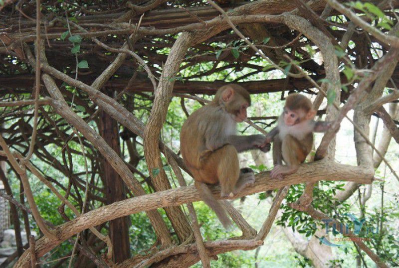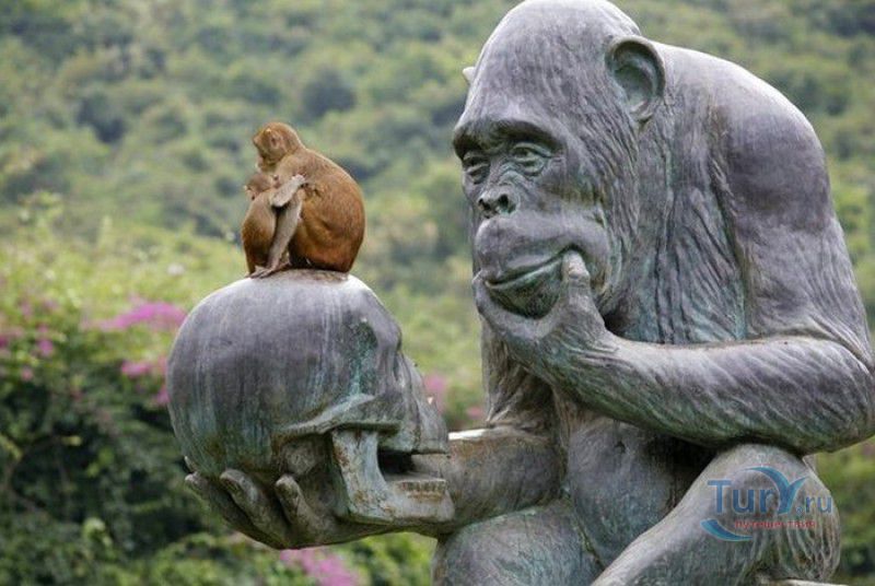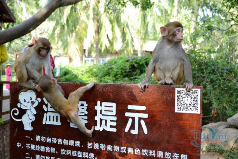 Остров Обезьян - единственный в мире тропический остров-заповедник, в котором обитают около 1500 особей макак-резусов, находящихся под охраной государства, и одновременно туристическая достопримечательность Китая, имеющая статус АААА (аналог 4*). Остров Обезьян расположен на юго-востоке острова Хайнань, в 14 км от города Линшуй, рядом с рыбацкой деревней Синцунь, от которой отделён небольшим проливом. В заповедник можно попасть либо на катере, либо по самой длинной в Китае надводной канатной дороге, протяженностью 2138 метров. Во время поездки из кабины открывается живописная панорама морского побережья и рыбацкого посёлка, построенного на воде. Заповедник Остров Обезьян был основан в 1965 году, расположен на территории площадью 10000 квадратных километров, 95% которой занимает тропический лес. Тёплый климат, пышная растительность, гроты, пещеры и обилие тропических фруктов - настоящий обезьяний рай. В заповеднике для обезьян построен большой бассейн, есть горячие источники, в которых макаки принимают водные процедуры. На входе в заповедник обычно "дежурят" несколько макак с флагами в лапах, приветствуя таким образом гостей Острова Обезьян. Макаки абсолютно не боятся людей, подходят совсем близко и очень любят фотографироваться с посетителями. Однако, не стоит забывать, что обезьяны - дикие животные. Они могут быть агрессивными и очень навязчивыми, особенно, если "решат", что у посетителя есть что-либо съедобное. В заповеднике есть обезьяний цирк и театр, в которых выступают дрессированные макаки, выполняющие довольно сложные трюки. В специально отведенном месте и только в присутствии сотрудников заповедника можно угостить обезьянок их любимыми лакомствами. Рядом с бассейном всегда многолюдно - посетители с интересом наблюдают за головокружительными прыжками макак с вершины деревьев в воду. В жаркие дни обезьяны устраивают весёлые игры в воде и самые настоящие соревнования по плаванию. После посещения заповедника можно провести время на большом песчаном пляже и продегустировать блюда из морепродуктов в ресторанчиках, расположенных прямо на рыболовецких плотах.