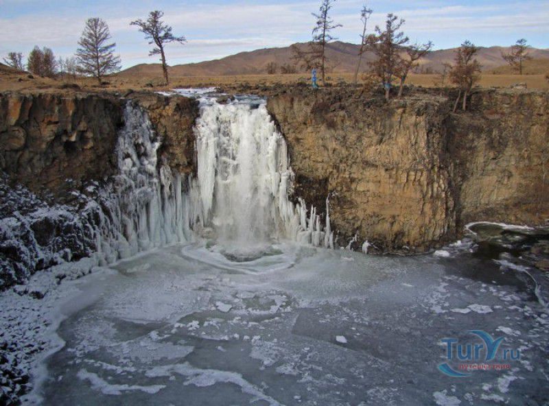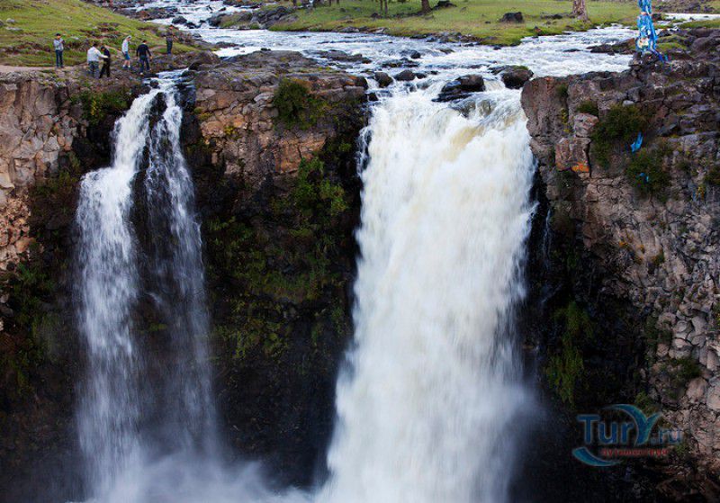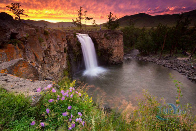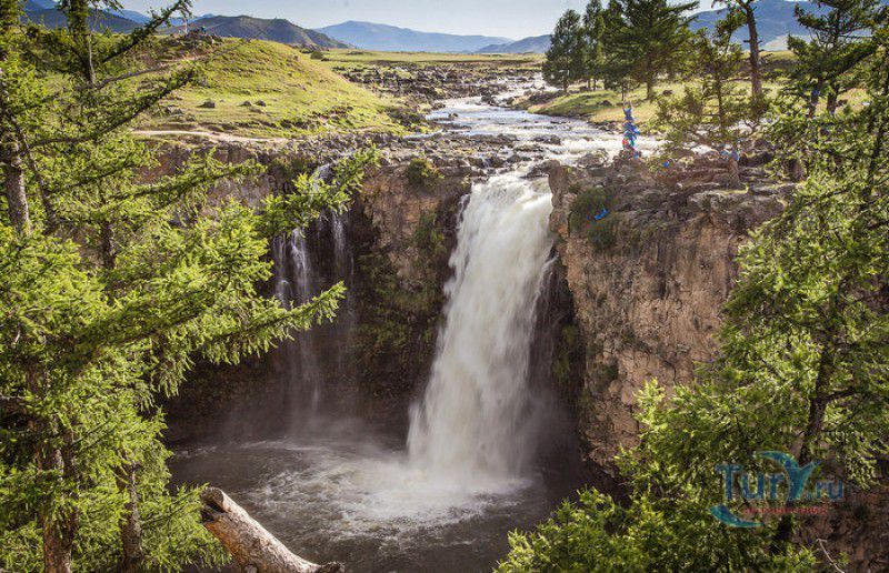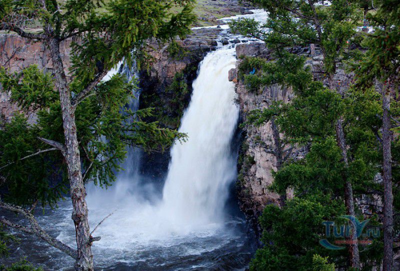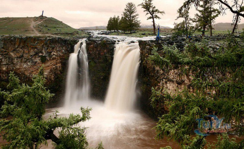 Водопад Улан Цутгалан (Водопад Орхон) расположен в центральной Монголии, в провинции Уверхангай, на территории Национального парка Долина реки Орхон, в 25 километрах к западу от посёлка Бат-Улзий (центра одноимённого сомона). Водопад Улан Цутгалан (в переводе с монгольского Красный приток) образует река Улан-Гол, правый приток реки Орхон. Более 20 000 лет назад у истоков реки Орхон, на территории горного массива Хангай, произошло сильнейшее извержение вулкана, долина реки Орхон была покрыта лавой более чем на 100 километров. Тысячи лет река протачивала себе дорогу в вулканических базальтах, прорезая глубокий каньон. В результате одного из землетрясений примерно в 100 метрах от места впадения Улан-Гола в реку Орхон образовался крутой обрыв высотой 24 метра, с которого вода обрушивается вниз двумя мощными потоками шириной 12 метров. У подножия водопада образовался природный бассейн, окружённый пышной растительностью. К подножию водопада ведут два спуска - ближайший, крутой и опасный, проходит через расщелину глубиной 20 метров, второй спуск расположен в 200 метрах от первого, этот путь намного безопаснее, его без труда преодолеют пожилые люди и дети. Особенно красив и полноводен водопад Орхон весной и после дождей, в засушливый период водопад теряет свою силу и может совсем пересохнуть. Улан Цутгалан - самый большой и живописный водопад в Монголии и одна из самых известных и посещаемых природных достопримечательностей страны. Улан Цутгалан пользуется большой популярностью как среди иностранных туристов, так и среди местных жителей. Несмотря на большое расстояние (около 450 километров) от Улан-Батора и достаточно утомительную дорогу (она проходит по базальтовому плато, очень камениста и ухабиста) в выходные дни здесь много отдыхающих из столицы, туристы останавливаются либо в туристических лагерях, расположенных в окрестностях Улан Цутгалана, либо ставят палатки прямо у водопада.