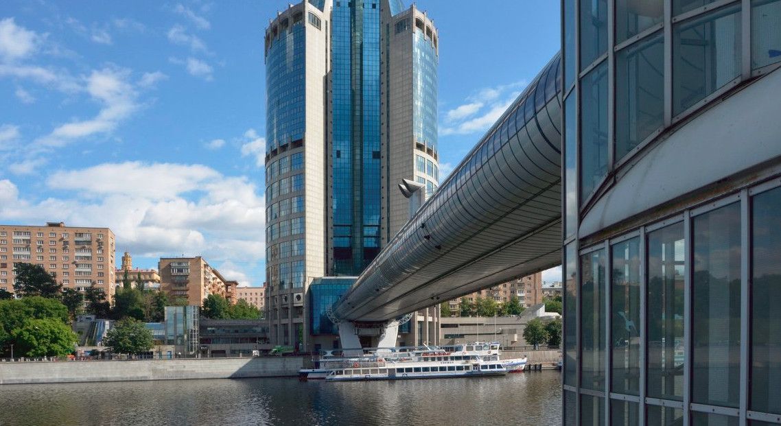 Мост Багратион - торгово-пешеходный мост через Москва-реку в составе строящегося комплекса Москва-Сити. Мост сооружён из стекла и бетона по проекту архитектора Б. И. Тхора и назван в честь русского полководца П. И. Багратиона.