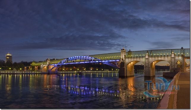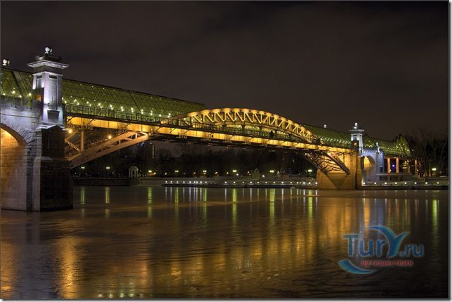 Пушкинский мост - пешеходный мост, построенный через Москва-реку в Москве. Соединяет Пушкинскую набережную Нескучного сада с Фрунзенской набережной. Мост был построен в 1999 году с использованием конструкций старого Андреевского моста. Построен по проекту Л. Д. Проскурякова и А. Н. Померанцева.