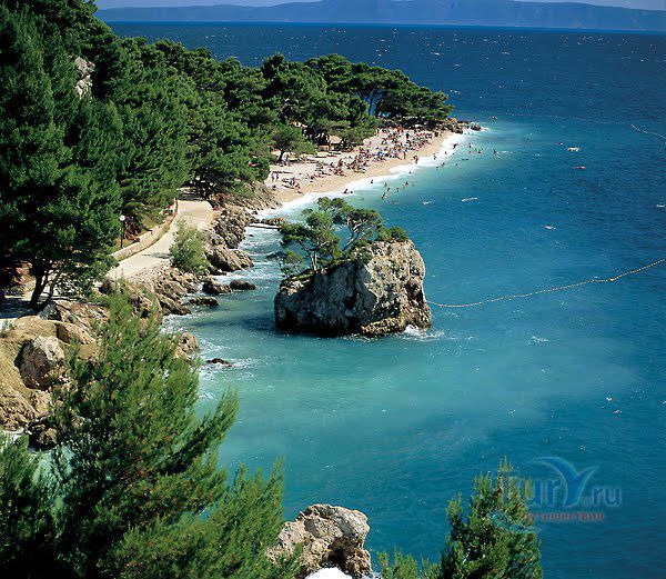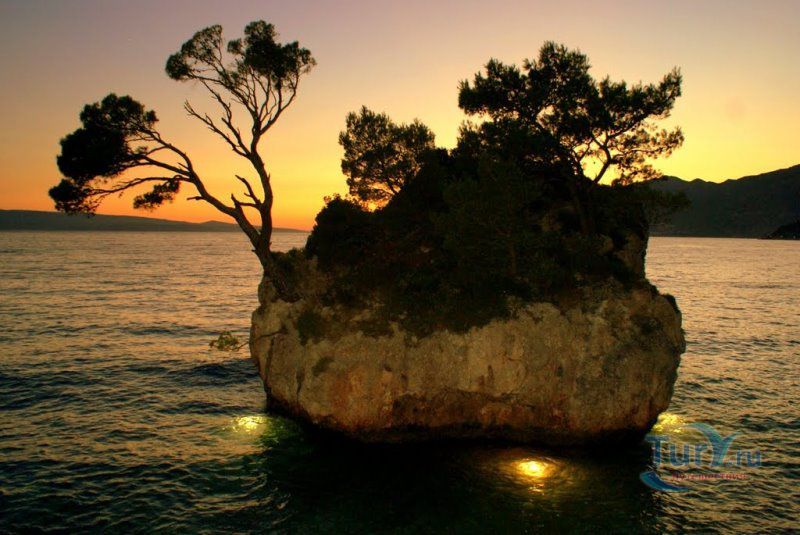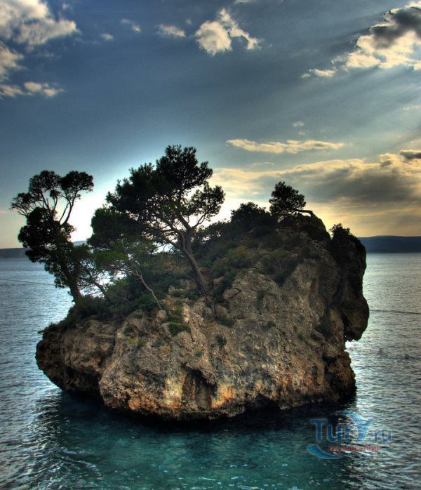 представляет собой обломок скалы, который когда-то скатился с гор Биоково прямо в море. Теперь он зарос соснами, которые, кажется, растут прямо из моря. Знаменитый обломок скалы находится под защитой как природный памятник.