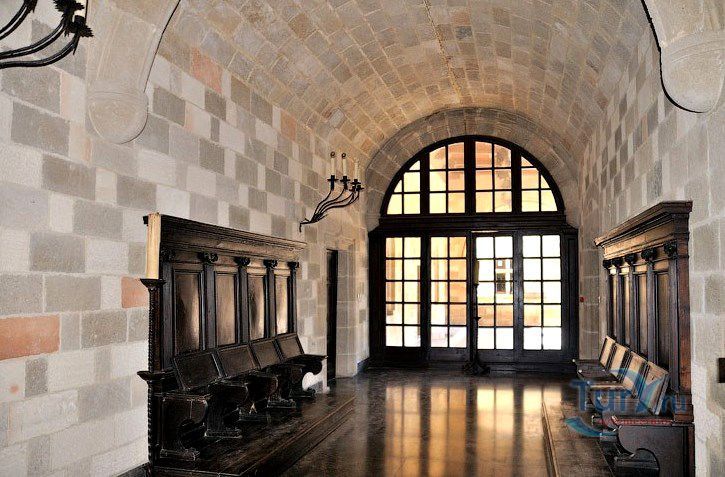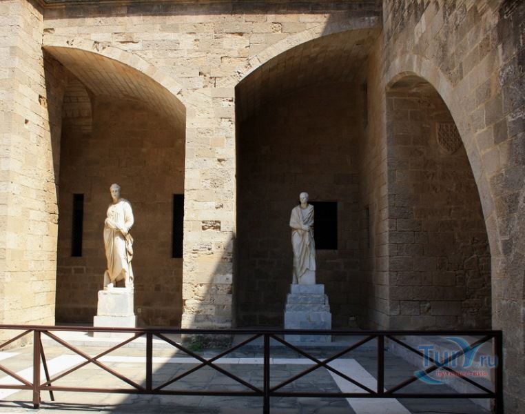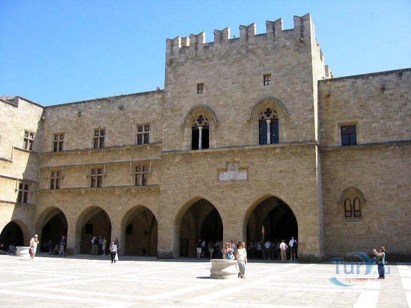 Во Дворец великих магистров ведет знаменитая улица Средневекового города Родоса - Улица Рыцарей. Дворец завершает улицу и располагается напротив церкви Святого Иоанна, покровителя Родосских рыцарей. В конце улицы Вашему взору предстает грандиозное здание, внутреннее убранство которого поразит воображение не меньше, чем внешний облик. Дворец был построен рыцарями Ордена Святого Иоанна Иерусалимского в XIV веке на месте Византийской крепости VII века. В его внутренних залах хранятся уникальные скульптуры, восточные вазы, ковры, антикварная мебель, мозаики. Здесь также собраны экспонаты древнегреческого, римского и византийского периодов истории острова. Среди внутренних помещений дворца наиболее примечательными являются: Большой зал для приемов, Зал ожидания, Зал икон, Бальный зал, Музыкальная комната, Зал Медузы и другие. Из 158 комнат и залов дворца для посетителей открыто 24.