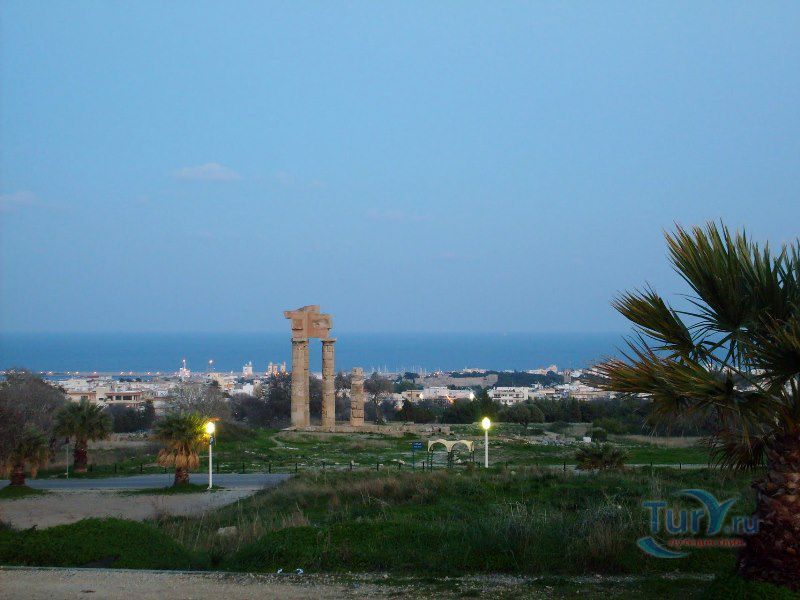 С вершины горы на высоты 150 м открывается завораживающий вид на бирюзовое Эгейское море и берега Турции, а с дороги с пальмами - прекрасный вид на Иксию.