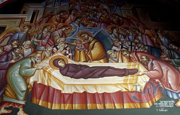 Церковь Успения Божией Матери больше известная как Панагия Кремасти расположена в деревне Кремасти, в 12 км к юго-западу от столицы Родоса, на северо-западном побережье острова Родос. Это самая главная церковь деревни Кремасти. Церковный дворик выложен гладкими черными и белыми камушками, поставленными на ребро и сложенными в узоры. Посреди церкви, по направлению к алтарю, проложена ковровая дорожка огороженная столбиками, по боками установлены ряды сидений со специальными откидывающимися крышками, позволяющими вставать в самые важные моменты службы. Ряды сидений подписаны: слева - "ΘΕΣΕΙΣ ΓΥΝΑΙΚΟΝ" - места для женщин, справа - "ΘΕΣΕΙΣ ΑΝΔΡΩΝ" - для мужчин. Это правило строго соблюдается местными жителями и в других храмах, даже где нет сидений и разграничителей пространства. Солея, возвышение перед алтарем, огорожена золоченой решеткой. Стены украшают росписи, среди которых Архангел Гавриил и Успение Богородицы, в честь которой и освящена церковь.