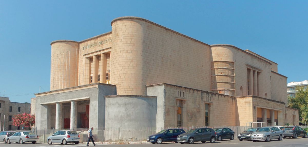 Национальный театр Родоса расположен на центральной Ратушной площади. Это впечатляющее здание является один из лучших образцов германского архитектурного стиля. Он был построен в 1937 году с использованием новаторской технологии Finta Pietra. Первоначальное название театра - "Театр Пуччини", он считался одним из самых современных театров своей эпохи, на его сцене ставили оперы. В настоящее время театр служит местом проведений для театральных представлении и киносеансов.