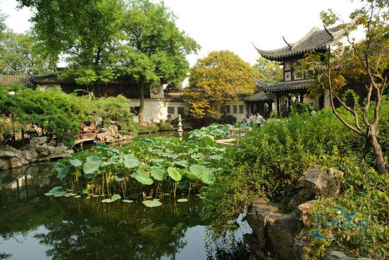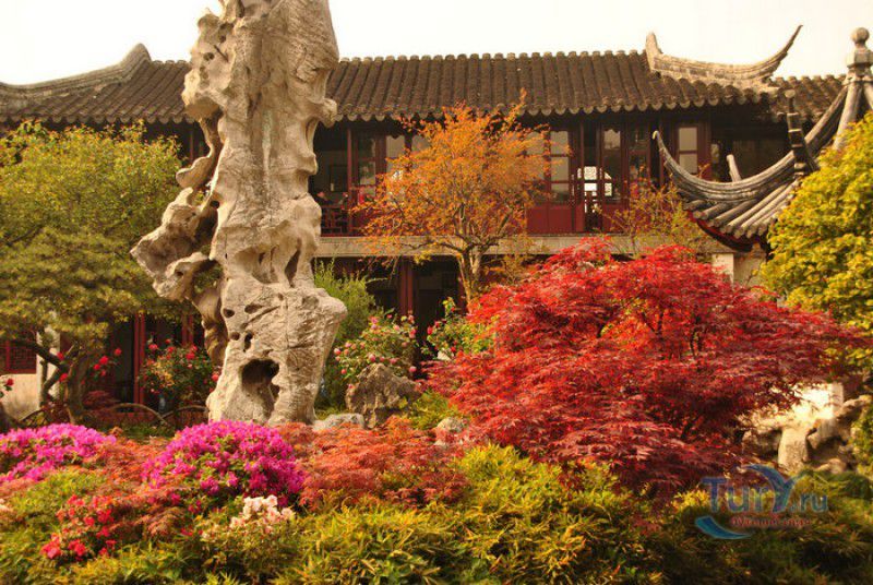 Сад Медленно Текущего Времени (Лю Юань) - один из четырёх классических китайских садов города Сучжоу, внесенных в список Всемирного наследия ЮНЕСКО, обладатель статуса ААААА (5*) в рейтинге культурных достопримечательностей Китая. Сад был основан в 1593 году вышедшим в отставку чиновником Сюй Таем. Уйдя с государственной службы, Сюй Тай вернулся в родные края и принялся за создание сада своей мечты. Восточный сад (название сада, данное ему Сюй Таем) создавался для "изящного" времяпровождения, здесь были обустроены места для чтения, философских бесед, занятий живописью и каллиграфией. Центральную, самую старую часть сада занимает пруд, в середине которого сооружён искусственный каменный остров с гротом. Остров по форме напоминает скалу, на его вершине построена беседка, из которой открывается великолепный вид на сад. Попасть в неё можно по одному из мостов, соединяющих остров с берегом. В западной части пруда находится сад камней, на территории которого были посажены кленовые деревья. Наиболее красива эта часть сада осенью, когда красные листья клёнов отражаются в спокойной глади пруда. В 1795 году потомки Сюй Тая продали усадьбу господину Лю Шу, который значительно перепланировал и перестроил сад, собрал в нём большую коллекцию камней необычной формы из озера Тайху, посадил бамбуковую рощу и назвал сад Виллой Ханьби. При нём были построены многие павильоны, беседки и залы, которые и сейчас можно увидеть на территории сада. Лю Шу был искусным каллиграфом, его работы украсили стены галерей, ворот и других помещений. В 1873 году владельцем сада стал Шэн Кан. Новый хозяин расширил территорию своих владений, провёл реконструкцию зданий и дал саду новое имя - Лю Юань, что в переводе с китайского означает Сад Медленно Текущего Времени (Сад Затянувшегося Времени, Сад Уединения или Сад Томления). В наши дни сад занимает территорию площадью 23310 квадратных метров, делится на четыре зоны - центральную, восточную, западную и северную. Все четыре части сада и главные его достопримечательности соединены между собой 700-метровым крытым коридором с вырезанными в стенах большими окнами-рамами. У человека, идущего по коридору и смотрящего через окна на живописный парк, создается впечатление, что он находится в картинной галерее. Сад Лю Юань воспевали поэты, его красота вдохновляла художников, он праву считается одной из главных достопримечательностей Сучжоу и является одним из лучших образцов китайского садового искусства.