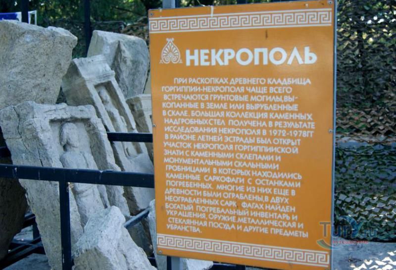 Анапский археологический музей-заповедник Горгиппия - это единственный в России музей-раскоп под открытым небом. Музей несколько раз менял адрес, с 1945 года находился в здании бывшей санатории для учащих и учащихся Кавказского округа по адресу: ул. Протапова,1. С 1956 года в музей поступают находки, полученные в результате раскопок античной Горгиппии. В 1977 году был создан археологический музей-заповедник "Горгиппия" на месте раскопок жилых кварталов города. Здесь можно увидеть несколько открытых раскопками кварталов Горгипии II - III веков н.э. и магистральную улицу. Археологический музей-заповедник "Горгиппия" включает в себя 1,6 га заповедной территории, из которых 0,7 га исследованы и экспонируются: жилые кварталы, дороги, колодцы, водостоки, винодельческие комплексы, оборонительные сооружения. Также под открытым небом выставлены археологические находки, сделанные на территории города - фрагменты резной облицовки фронтона храма и колонн, саркофаги и надгробные плиты.