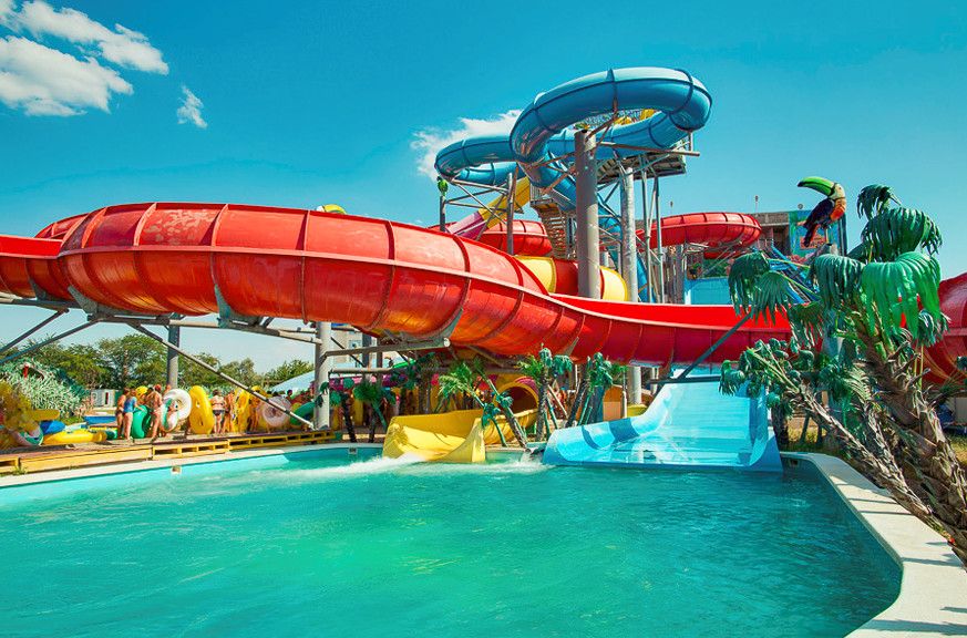 Аквапарк включает в себя разнообразнейшие водные развлечения для взрослых и детей. Всего 24 горки: "Камикадзе", "Бумеранг", "Тобоган Д, Е, Ф", "Супербол" и многие другие, общей протяженностью более 2 км спусков. 10 бассейнов: "Развлекательный", "Ленивый", "Медленная река", "Гидромассажный", "Детский", Приводнения "Супербол/Бумеранг", "Мелкий", Приводнения "Твистер/Камикадзе", "Прыжковый", Приводнения "Рафтинг семейный", "Волновой". Можно свершить сплав на четырехместных баллонах-рафтах - семейный рафтинг с высоты 6 этажного дома. Детей ждут всевозможные сюрпризы, детский комплекс "Сезон дождей", где водяные завесы и водометы, лабиринты и лестницы выведут их на интересные горки. На вершине комплекса расположена бочка, которая заполняется водой и при наполнении переворачивается.