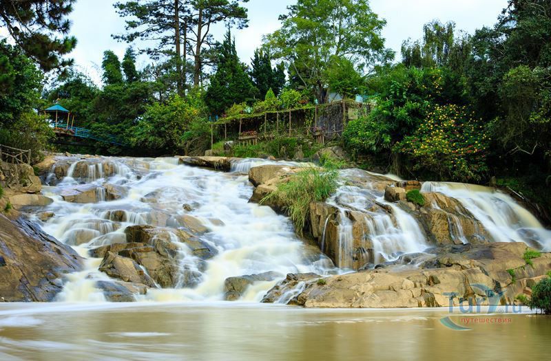 Водопад Камли расположен в 2 км к западу от центра Далата, в конце улицы Хоанг Ван Тху, между домами 57 и 59. Водопад берёт своё начало в ручье с аналогичным названием. Вода стекает по гранитной скале так спокойно и мягко, что это напоминает волосы девушки. Высота водопада составляет 15 метров. У подножия водопада расположен живописный парк со множеством цветов. Водопад Камли стал туристической достопримечательностью в 1911 году. Название "Камли" произошло из легенд, связанных с историей его образования. Согласно первой легенде, французы, которые доминировали в то время в регионе, по каким-то причинам пытали сына начальника местной коммуны Дагута Хамона Кам Ли недалеко от водопада, а затем казнили его. Сын, несмотря на причинённую боль, голод и жажду, много страдал, но не сказал ни слова. С тех пор люди назвали водопад его именем. По второй легенде французский картограф спросил мистера Дагута Хамона Кам Ли, как называется местный водопад, а тот ошибочно подумал, что картограф интересуется его именем и ответил "Кам Ли". С тех пор официально стали использовать название Камли для водопада и ручья. Многие люди считают, что слово "Камли" означает "прохладные потоки пресной воды в глубине человеческого сердца". В 1998 году Водопад Камли был признан национальным культурным историческим наследием. Но имеются и неприятные аспекты, связанные с водопадом. Всего в паре километров вверх по течению в ручей сбрасываются сточные воды города. В нём плавает много мусора и исходит неприятный серный запах. Тем не менее водопад посещает множество туристов. На фоне каскада туристам предлагают сфотографироваться в костюме ковбоя и верхом на коне.