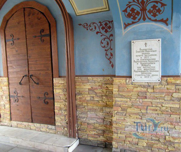 При входе на территорию монастырской усадьбы Свято-Николаевского мужского монастыря посетители проходят через врата Симеоно-Анненской надвратной церкви.