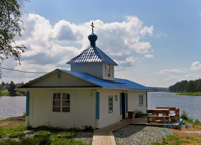 При въезде в Верхотурье со стороны Екатеринбурга стоит указатель "Храм", если по указателю повернуть направо, то Вы увидите небольшой двухэтажный домик. Это и есть тот самый храм в честь иконы Пресвятой Богородицы "Живоносный источник", рядом с которым находится целебный источник, известный своей кристальной чистотой. Храм был построен в 1894 году. В конце XIX - начале XX веков на заимке, принадлежащей Свято-Николаевскому мужскому монастырю, останавливались многочисленные паломники, говорят что среди них был Г. Распутин. На берегу реки Актай стоит часовенка с колодцем. Самое удивляет здесь то, что сам источник практически "подтоплен" рекой, вода в реке бурая, а в колодце чистейшая. Раньше река была значительно дальше от берега, колодец был построен до затопления. Рядом с источником есть небольшая беседка, в ней все обливаются животворной водой. Обычно водой омываются полностью или обливают голову из ведра. Согласно поверью, необходимо облиться с головой и не вытираться. Причем вылить на себя нужно именно 3 ведра воды.