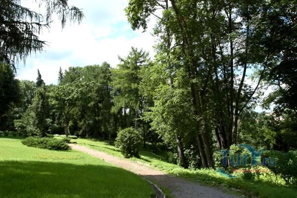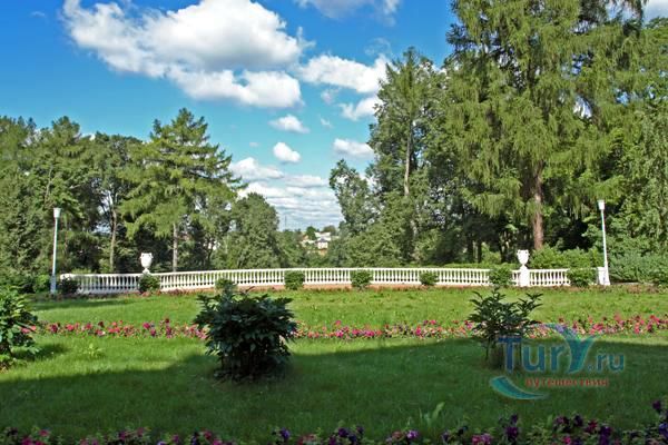 Следуя традиции русского садового искусства начала XIX века, парковая композиция строилась на сочетании местных древесных пород - липы, дуба, клена, вяза, ивы и березы. В качестве декора использовались кустарники сирени, шиповника и чубушника. Основной композиции парка был круглый родниковый пруд и большая поляна на склоне. На реки Туровке каскад прудов был устроен несколькими плотинами, сохранившимися до настоящего времени на север от парка, в пределах лесопарка заповедника.