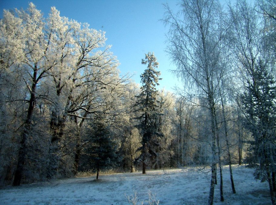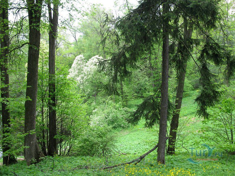 На территории парка встречается елово-березовый участок, где среди еловых насаждений растет лиственница сибирская. Центр участка составляет открытая поляна. В этой глухой части парка много птиц, слышны голоса зяблика, овсянки, синицы, поползня. На восточной и южной границах парка хорошо видна граничная канава и вал, созданные еще в начале XIX века.