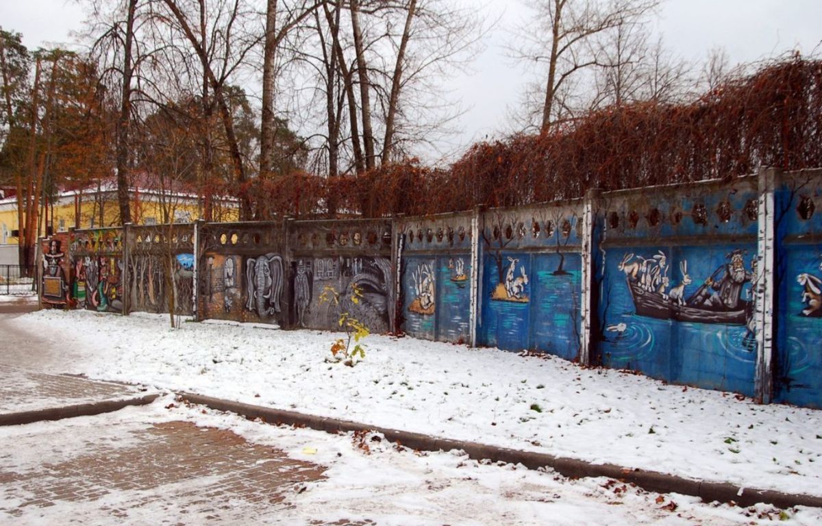 Достаточно интересные настенные рисунки встречаются по всему городу в самых неожиданных местах с различной тематикой, сохранилась даже "роспись" Советского периода. Самым интересным зданием является книжный магазин на улице Сахарова, дом 2. Маленький, но со всех сторон украшенных "росписями".