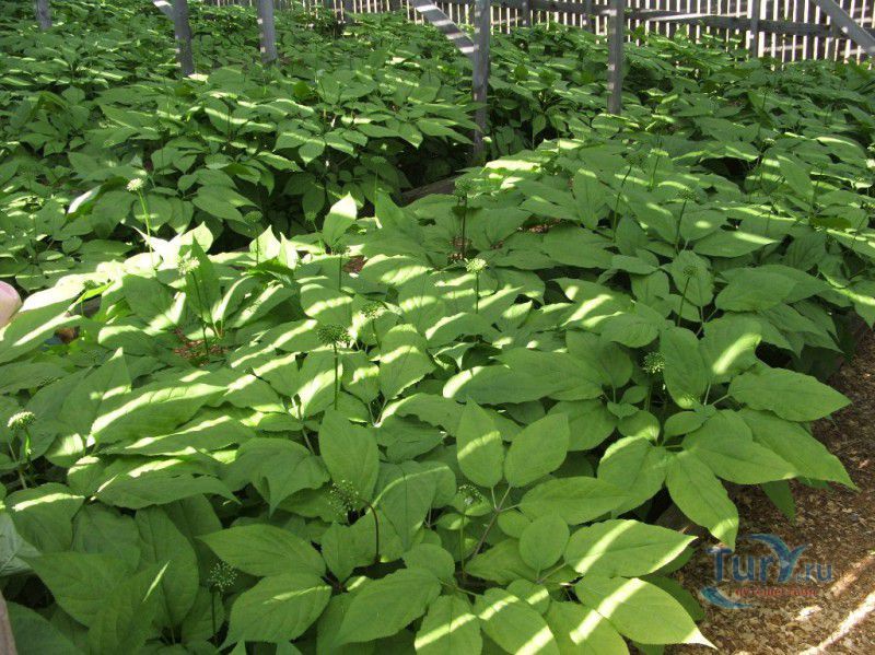 Хозяйка покажет Вам плантацию и расскажет про все тайны женьшеня. Экскурсия длится 30 - 40 минут, во время которой Вы узнаете о методах выращивания культивированного женьшеня. После осмотра Вы будете приглашены в огромный шатер, который раскинут в чистом поле, попробовать чай с женьшенем. Недалеко от шатра стоит тонар, где можно приобрести бальзамы с женьшенем, корень женьшеня, сухие порошки из корня женьшеня, а также листья, которые добавляются в чай для общеукрепляющего воздействия на организм.