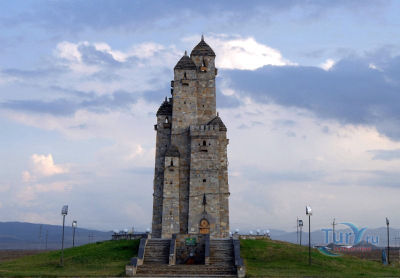 Раньше, это был Мемориальный комплекс жертвам репрессий, открытый 23 февраля 1997 года - к 53-ей годовщине трагедии ингушского и других депортированных народов СССР. Памятник представлял собой 9 башен, скрепленных колючей проволокой, символизирующих количество депортированных народов. Работа архитектора, заслуженного художника России Мурата Полонкоева. Позже прилегающую территорию обустроили, добавили арки, на одной из которых изображена сцена принятия ингушскими воинами подданства Российской империи, фонтаны и еще несколько памятников героям. В итоге получился совмещенный мемориал памяти и славы, открытие которого состоялось 9 июня 2012 года и приурочено к 20-летию Республики Ингушетия.