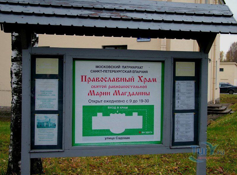 Церковь Святой Равноапостольной Марии Магдалины - первое каменное сооружение города. Расположено оно на пересечении Госпитальной улицы и улицы Садовая. К строительству церкви, с примыкающими к ней одноэтажными флигелями, архитектор Джакомо Кваренги на левом берегу Славянки рядом с деревней Кузнецы приступил в мае 1781 года. Закладка первого камня церкви состоялась в присутствии великого князя Павла Петровича. Освящение храма состоялось в сентябре 1784 года во имя небесной покровительницы основательницы Павловска Марии Федоровны. Образа для церкви были заказаны в Риме живописцу Кадесу, а настенная живопись была выполнена русским мастером Федором Даниловым. Фасады церкви имеют минимум украшений. Ее апсиду окружает прислоненная тосканская колоннада, придающая зданию суровую торжественность. Внутреннее убранство отличалось изящной простотой и благолепием, о чем особенно заботилась императрица Мария Федоровна. Церковь была украшена большим запрестольным паникадилом в 12 свечей, выточенным из янтаря и слоновой кости руками самой императрицы Марии Федоровны. В ризнице хранились иконы апостола Павла и Святой Марии Магдалины, поднесенные Святейшим Синодом в благословение цесаревичу Павлу при постройке города.