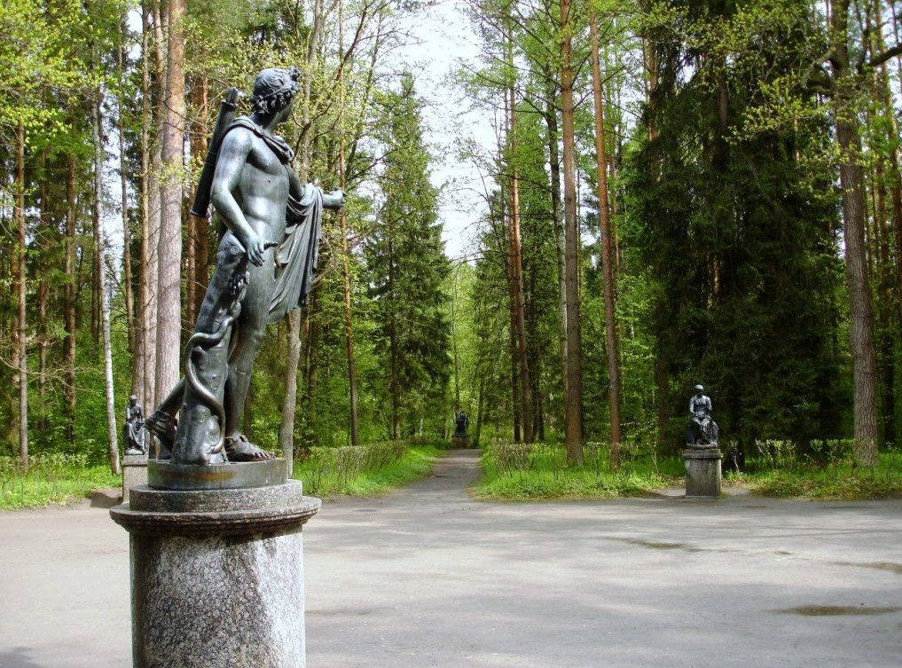 Аллея Двенадцать дорожек находится в районе Старая Сильвия. Аллея была спроектирована в начале 1790-х годов архитектором В. Бренной. Центром данной композиции является площадка со статуей Аполлона Кифареда, от которой расходится 12 дорожек, между которыми установлены 12 скульптур: Венера Каллипиги или Прекраснобедрая - богиня любви и красоты, Флора - богиня цветов, Меркурий - вестник богов, Евтерпа - муза лирической поэзии, Мельпомена - муза трагедии, Талия - муза комедии, Терпсихора - муза танца, Эрато - муза любовной поэзии, Полигимния - муза гимнов и красноречия, Каллиопа - муза эпической поэзии и песнопений, Клио - муза истории и Урания - муза астрономии.