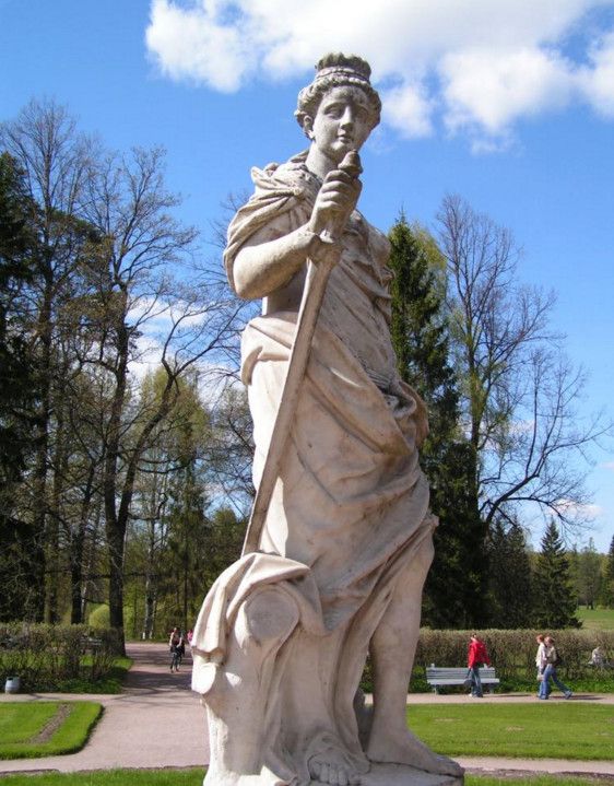 Большие круги - это два партера, оформленных цветниками. Они создавались в 1792 - 1799 годы по проекту В. Бренны, и расположены рядом с северным флигелем Павловского дворца. По центру партеров устроены невысокие круглые террасы из туфа, на которые с четырех сторон ведут лестницы. В центре террас установлены мраморные статуи начала XVIII века работы венецианского скульптора Пьетро Баратта. Статуи "Мир" и "Правосудие" были доставлены в Санкт-Петербург еще по заказу Петра I.