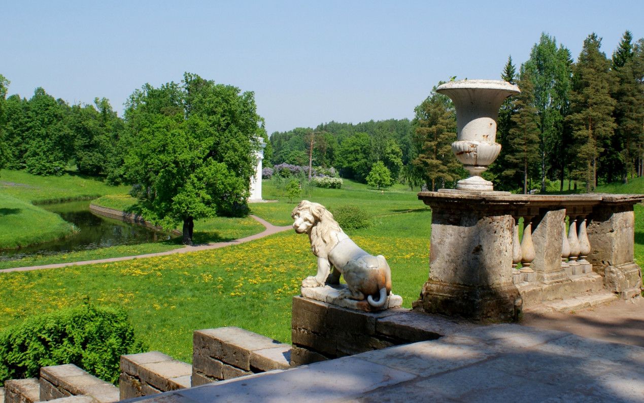 Большая каменная лестница спускается от Павловского дворца по крутому береговому склону в долину реки Славянки. Эта каменная лестница в 64 ступени украшена мраморными статуями львов и вазами сверку, и парами чугунных львов снизу. В долине реки Славянка на границе с Долиной прудов находится Павильон "Храм дружбы".
