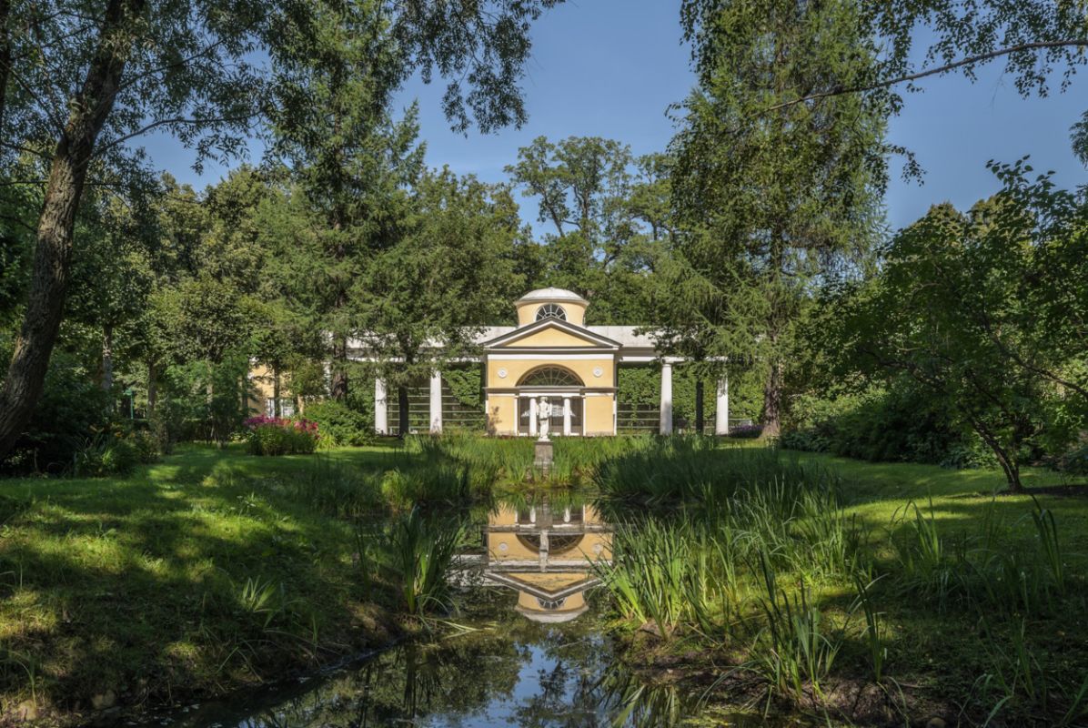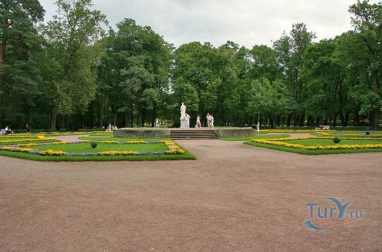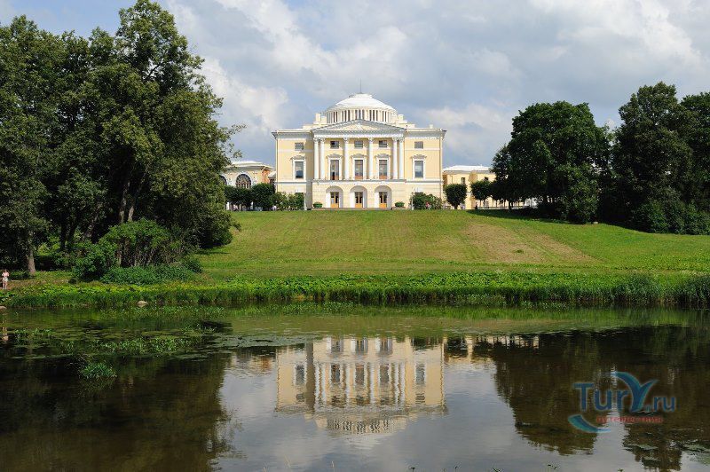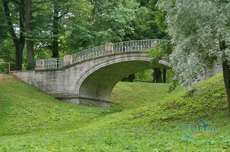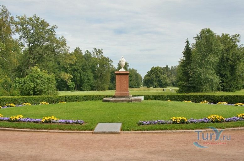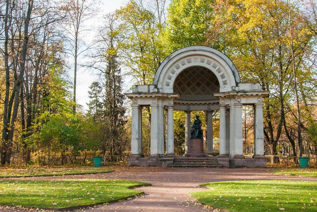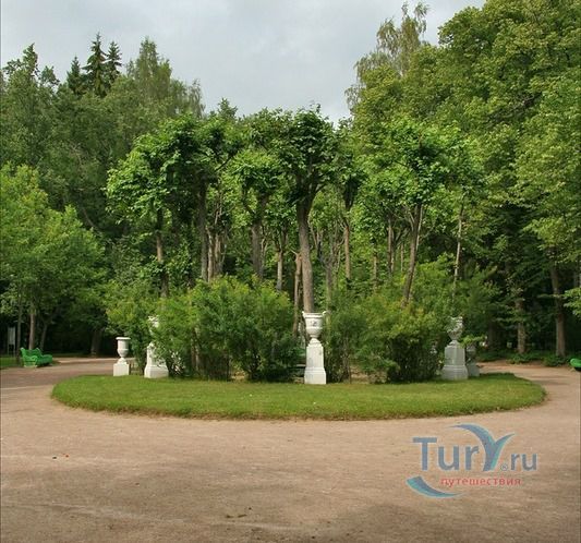 К северу, параллельно аллее, размещаются Большие круги. Прогуливаясь далее по парку, можно попасть к Воздушному театру, выполненному в традиционных формах садовой архитектуры XVIII века. Сцена была сооружена среди естественно растущих деревьев, под открытым небом, в виде небольшой насыпи. Кулисами служили симметрично расположенные кусты акаций, за которыми ставились деревянные трельяжи с прямоугольными просветами. Места для зрителей располагались амфитеатром и состояли также из земляных ступеней, покрытых дерном. Театр предназначался для постановки небольших музыкальных и балетных спектаклей. Декорации для некоторых из этих спектаклей выполнялись П. Гонзаго. Если следовать еще севернее вглубь парка, то совсем неожиданно для Вас предстанет еще одно творение Ч. Камерона, которое было тщательно спрятано от посторонних глаз - Молочный домик. В этой части Придворного района парка, где-то среди деревьев, на месте турецкой палатки в 1815 году архитектором К.И. Росси была создана беседка "Росси".