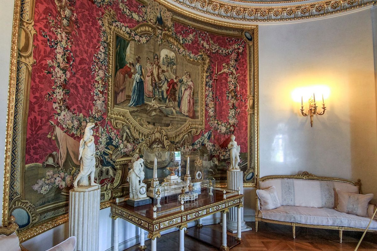Парадные покои императора Павла I состоят из 5 комнат: Камердинерская, Туалетная, Малый кабинет, Парадная библиотека и Ковровый кабинет. Открывает их Камердинерская, созданная архитектором В.Бренной в 1793 году. Сейчас в этой небольшой комнате экспонируются некоторые предметы мебели того времени. На стенах висят две картины, на которых изображены сцены путешествия графа и графини Северных, цесаревича Павла Петровича с супругой, по Европе в 1782 году. За Камердинерской следует Туалетная или Уборная. Над проектированием и оформлением этой небольшой комнаты работали архитекторы: Ч. Камерон в 1786 году, В. Бренна - 1792 году. Она украшена лепниной, объемными картинами и статуей фавна. Далее дверь из Туалетной ведет в 2 помещения, разделенные широкой аркой - Малый кабинет и Большую библиотеку. Малый кабинет был создан архитектором В. Бренной в 1790-е годы и восстановлен А. Воронихиным после пожара 1803 года. В центре Парадной на столе стоит модель античного храма, часть деталей которого выполнена императрицей Марией Федоровной. Она была искусной мастерицей и рукодельницей. Здесь же на стене висит ее парадный портрет. Из Парадной библиотеки переходим в Ковровый кабинет. Он был специально спроектирован В. Бренной для размещения гобеленов, подаренных королем Людовиком XVI цесаревичу Павлу Петровичу во время его европейского путешествия в 1782 году. В 1931 году советское правительство продало их, и в настоящее время они находятся в музее Поля Гетти, Малибу, США. Вместо них сейчас стены кабинета украшены двумя брюссельскими шпалерами XVIII века и французским гобеленом 1776 года.