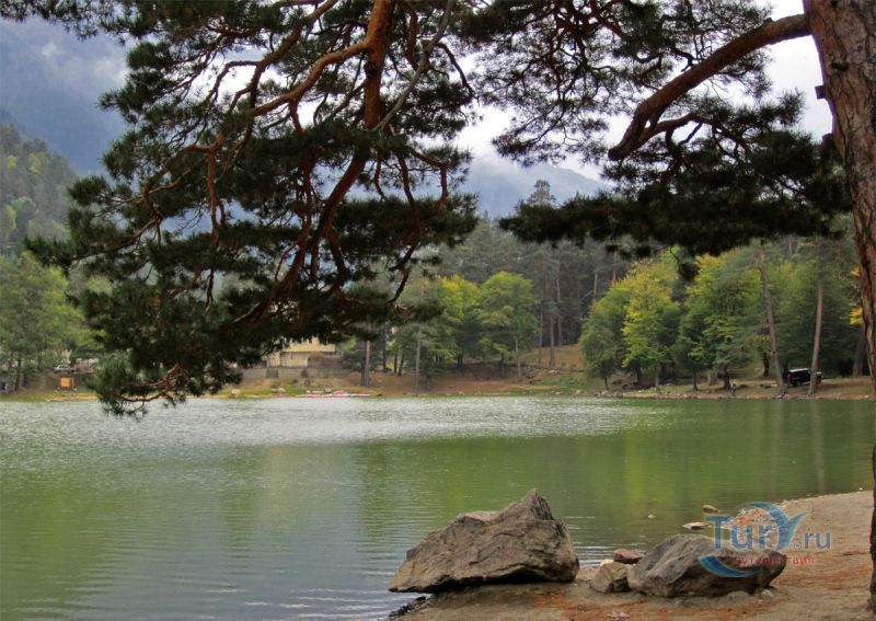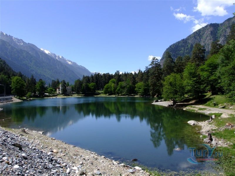 На южной окраине города Теберда раскинулось Кара-Кёль, что в переводе означает "Черное озеро". Оно названо так за свой цвет, что обусловлено большим содержанием органических веществ. Оно не очень большое, всего 2,3 га по площади, средняя глубина - 2,5 м, максимальная - 7 м. Оно образовалось при отступлении Тебердинского ледника и его возраст оценивается в 8000-10000 лет. Бессточный водоем карстового происхождения питается оно за счет бьющих со дна ключей и небольших ручьев, стекающих со склонов горы Кель - Баши. Озеро постоянно зарастает водными растениями, такими как урутье и рдест. В озере водится глубоководная форель, достигающая крупных размеров до 3 - 5 кг. Черное озеро - это самое теплое озеро Тебердинского заповедника, летом температура воды в нём достигает +20 градусов.