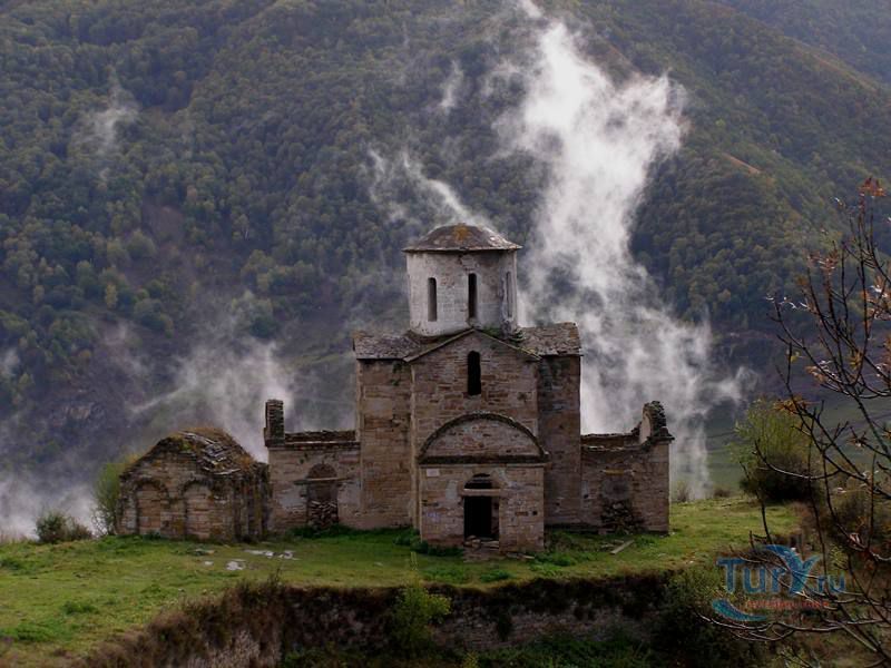 Сентинский храм является одним из древнейших на территории России. Он расположен в глубине Тебердинского ущелья, на высоком утесе массива Бурун-Сырт. На склоне этой же горы расположены и монастырские постройки. В 1897 году здесь был открыт Спасо-Преображенский женский монастырь.