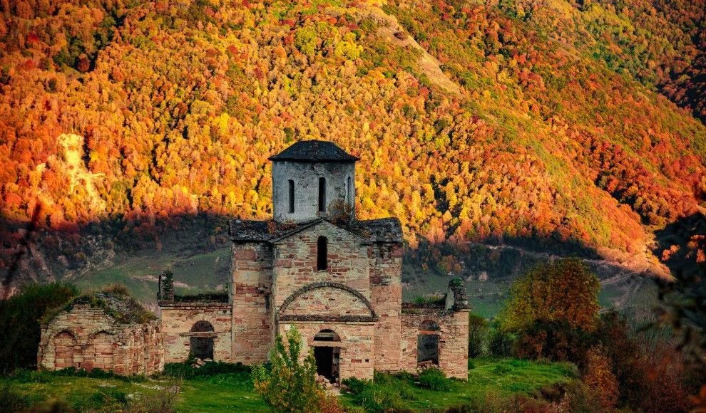 Сам храм прекрасно сохранился, не дав ни одной трещины. На стенах барабана сохранились следы фресковой росписи, датированной XI веком. Совсем недавно ученые-археологи обнаружили под слоем фресок надпись на греческом языке, свидетельствующую о том, что храм был построен в апреле 967 года. Место для строительства храма было выбрано не случайно. По ущелью Теберды шло одно из ответвлений Великого шелкового пути, которое вело из степей Предкавказья к восточному побережью Черного моря.
