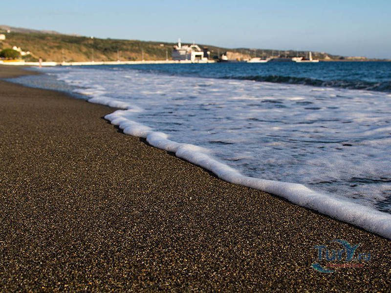 Большая часть пляжа - помесь гальки с песком. А вот в западной оконечности преобладает песок. Здесь хорошие места для спокойного отдыха.