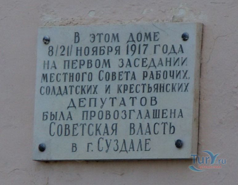 Дом купца Кашицина был построен в первой половине XIX века. Этот памятник градостроительства и архитектуры регионального значения находится в центре древнего города Суздаля на улице Кремлевская. В этом доме в 1917 году через 2 недели после Октябрьской революции с балкона здания была провозглашена Советская власть. В годы Великой Отечественной войны здесь был открыт детский дом № 4 для детей из блокадного Ленинграда. Об этих двух исторических событиях свидетельствуют две мемориальные таблички. В послевоенное время в здании размещалась общеобразовательная школа.
