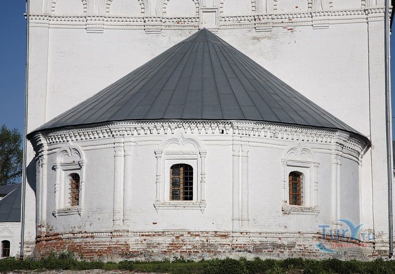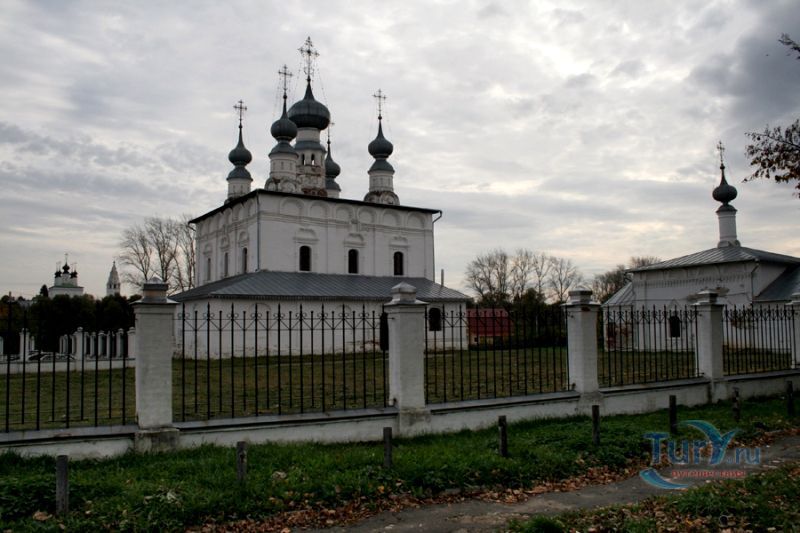 Петропавловская церковь была построена в 1694 году в Никольской слободе, у самых стен Покровского монастыря. Строилась она по заказу монастыря и под наблюдение суздальского митрополита - Иллариона, который следил за исполнением нововведений патриарха Никона. Церковь строилась с учетом всего ансамбля Покровского монастыря, главному собору которого к тому времени уже было почти 200 лет. Перед суздальскими зодчими стояла задача органично вписать новую церковь в пейзаж монастыря. В итоге получилась пятиглавая церковь с куполами луковичной формы, под стать Покровскому монастырскому собору. Большой массив основного клуба имеет с западной стороны паперть, а с северной - придел. Фасады декорированы оконными наличниками с арочками, заостренными в центре, красивыми перспективными порталами и карнизом, состоящим, из полукруглых кокошников с поребриком. Внутреннее помещение имело лепные барочные рамы, как на стенах, так и на сводах, с расписанными внутри них картинами из священного сюжета. Часть этих украшений сохранилась до наших дней. К северо-западному углу основного здания церкви примыкала колокольня. Нижняя ее часть имела в основании куб, с большим круглым столбом в углу, от которого на стены паперти были перекинуты арки. На них находился четверик - куб и восьмигранник со звонами вверху. Восьмерик завершался прямолинейным широким шатром. Эта монументальная и грузная форма колокольни отличалась от стройных колоколенок Суздаля. Позднее колокольня и весь северо-западный угол паперти были разобраны при переустройстве здания.