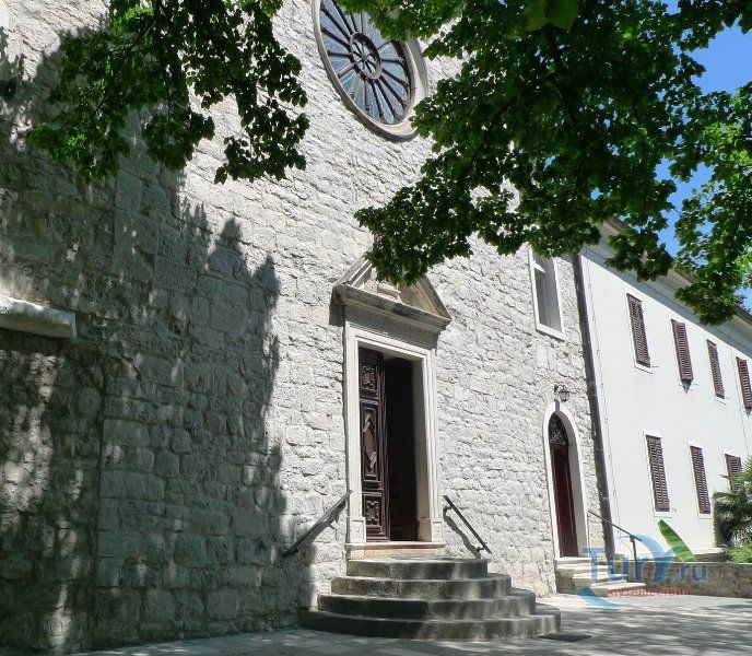 Строгие стены и высокие колокольни монастыря окружены высокими кипарисами, а в саду спокойной прогуливаются важные павлины, курочки под присмотром петуха, встречаются даже кролики.