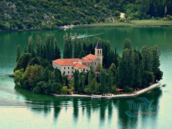 Францисканский монастырь Висовац находится на маленьком островке посреди озера Висовац, который относится к территории Национального парка Крка. Монастырь был построен в XIV веке первыми поселенцами - монахами августинцами, выходцами из Боснии. Они были изгнаны с родных земель турецкими завоевателями, но успели захватить с собой ценную коллекцию книг, произведений искусства и даже турецких документов. В 1445 году монастырь перешел во владение к францисканцам, которые его расширили и перестроили. С VXI по XIX века в монастыре собрали богатую коллекцию картин, реликварии и народные костюмы. У посетителей монастыря есть возможность увидеть редкую копию басен Эзопа, которая была напечатана в 1487 году. Это один из трех экземпляров в мире.