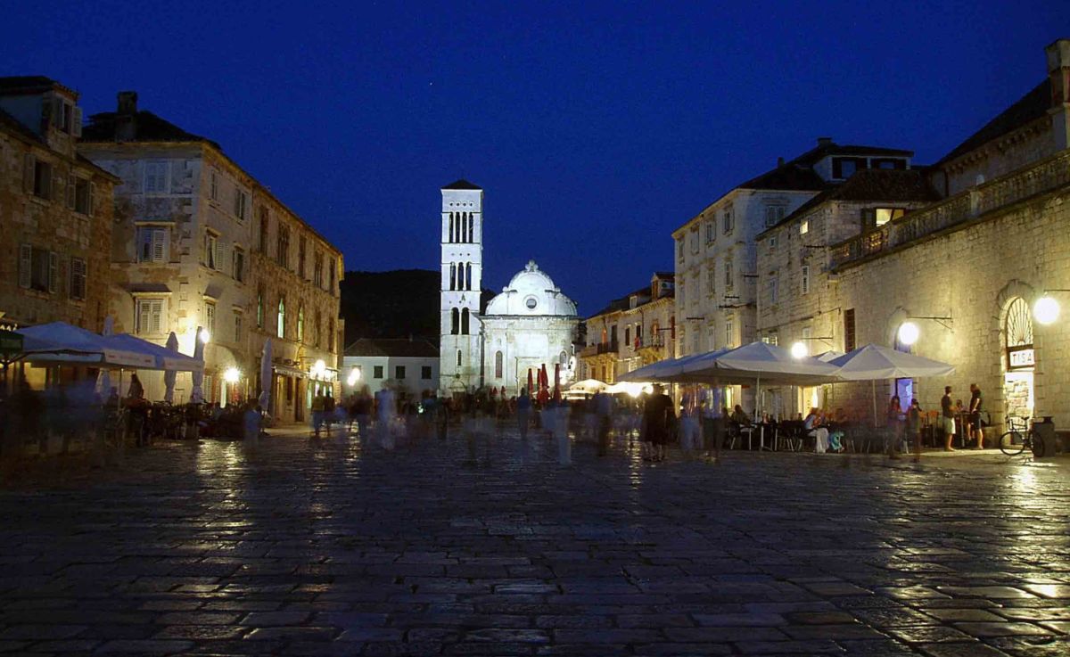 Площадь Святого Стефана является центральной площадью города Хвар и одной из старейших городских площадей Далмации. Площадь возникла на месте осушенной болотистой части залива, и была полностью вымощена камнем в 1780 году. На восточном краю площади стоит главный символ города - собор Святого Стефана. Перед собором, посреди площади, расположен городской колодец 1520 года, закрытый ажурной решеткой. На острове всегда были проблемы с пресной водой, поэтому к колодцам здесь почтительное отношение. Проблема нехватки пресной воды была решена только в 1987 году, после прокладки по дну моря водопровода с материка. До этого времени для питья использовалась очищенная дождевая вода, а специальные корабли в цистернах доставляли с материковой Далмации питьевую воду на все пристани острова.