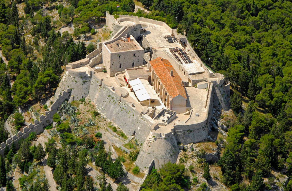 Испанская крепость расположена на горе Святого Николы и гордо возвышается над городом Хвар. Она является главной достопримечательностью Хвара и, даже, украшает городскую символику - герб и флаг, на которых изображено, как над крепостью на золотом троне располагается покровитель Хвара святой Стефан, христианский апостол и перво мученик, с поднятыми в благословении перстами. Перед крепостью видны старые городские стены с башнями, собор святого Стефана на городской площади и здание старой верфи - Арсенала, над синей полосой моря.